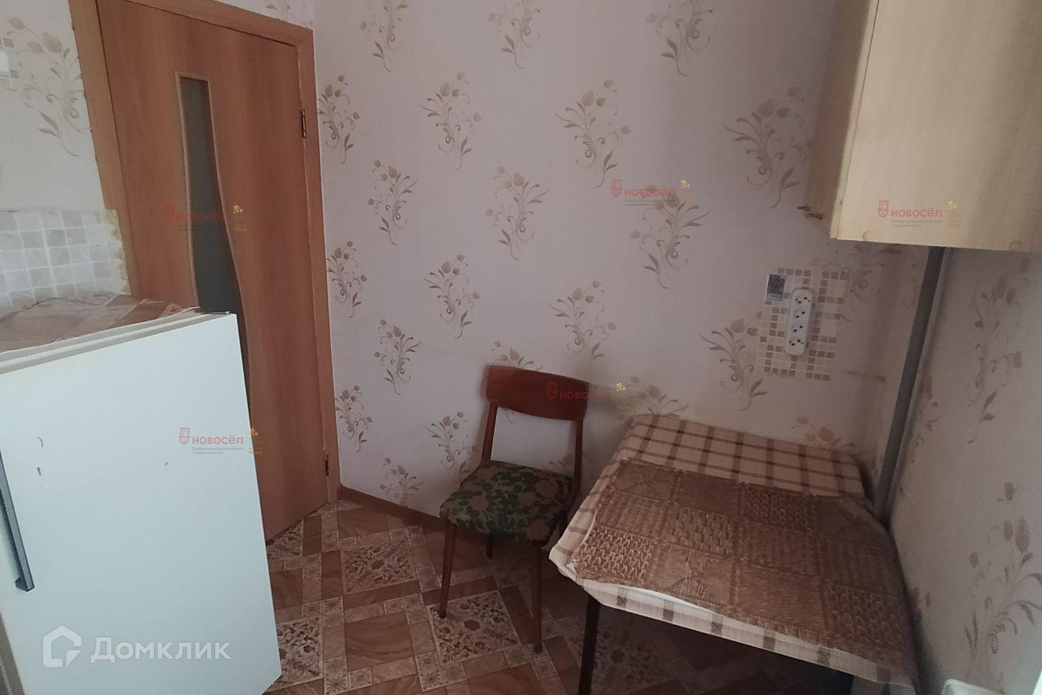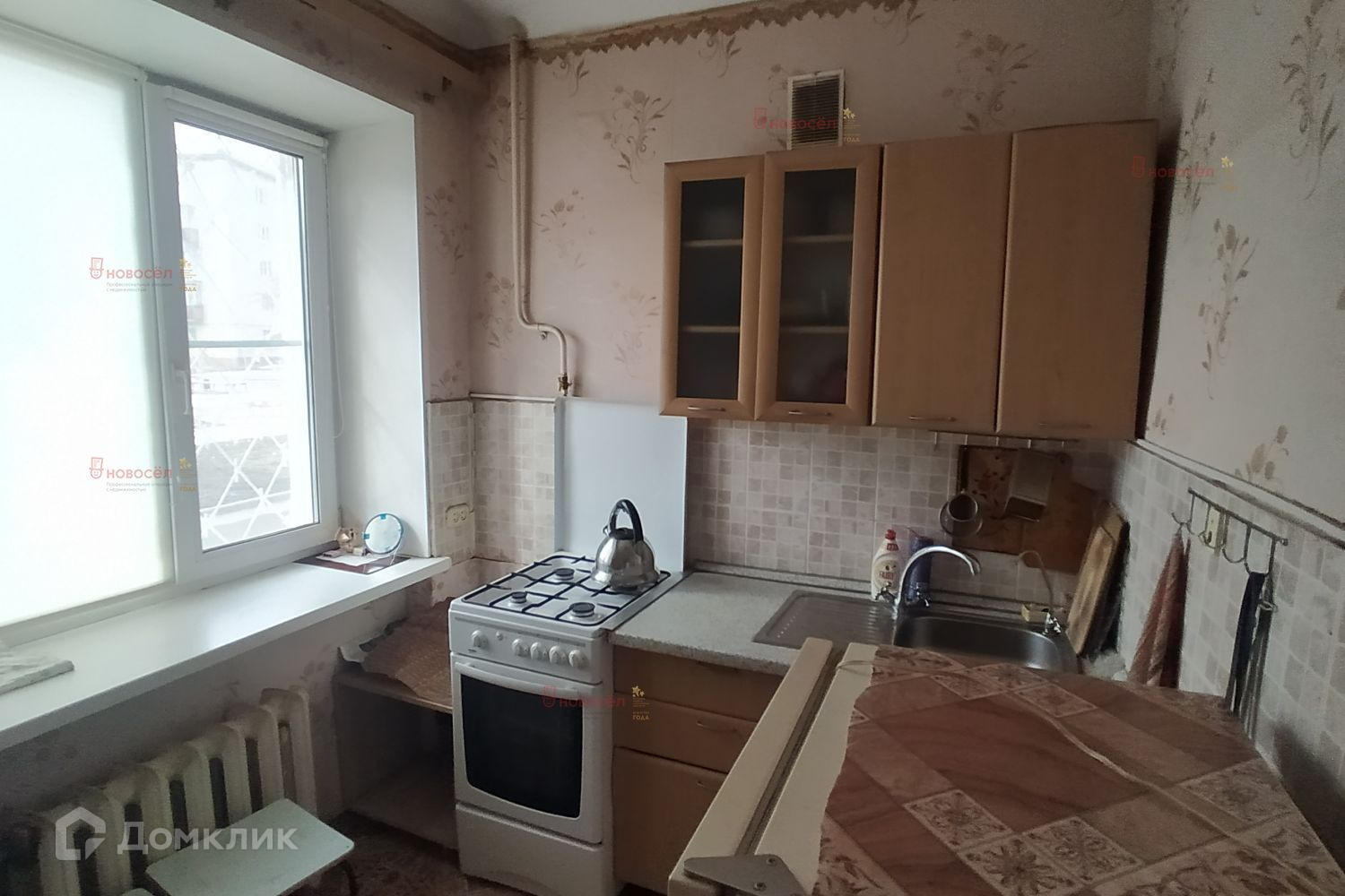 Окна пластик, на полу линолеум. Требуется косметический ремонт. Остается кухонный гарнитур.