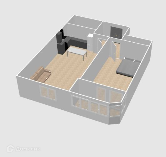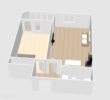 Евро-двухкомнатная квартира с кухней-гостиной 22,37м2