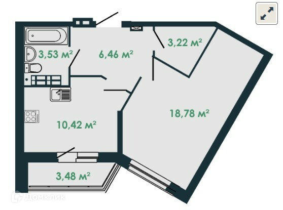 Жилая площадь 18.78 м2
