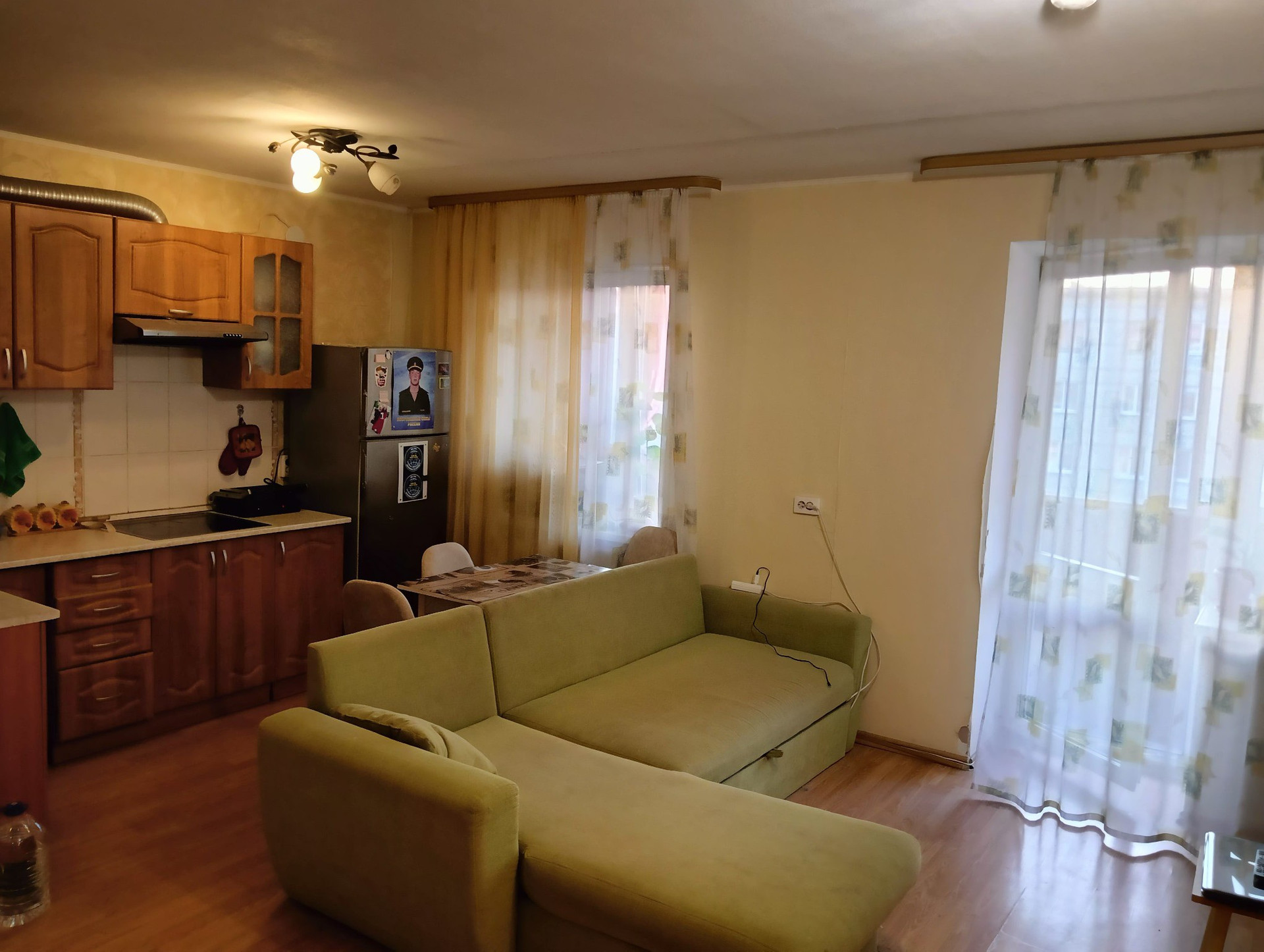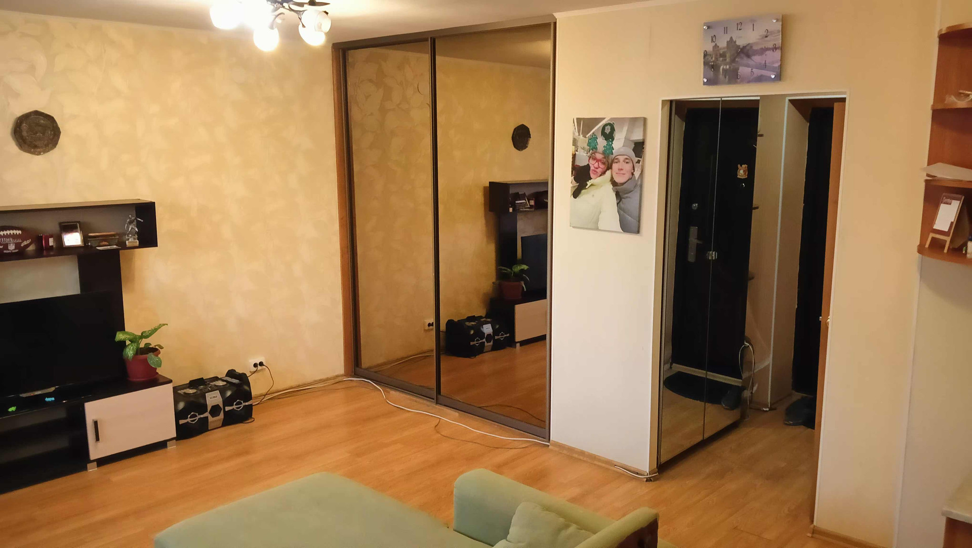В подарок новым собственникам в квартире остаётся кухонный гарнитур с электрической плитой, 1 гардеробная, 1 шкаф в коридоре, диван, водонагреватель, стенка под ТВ. Проведен кабель под Интернет и домофон.