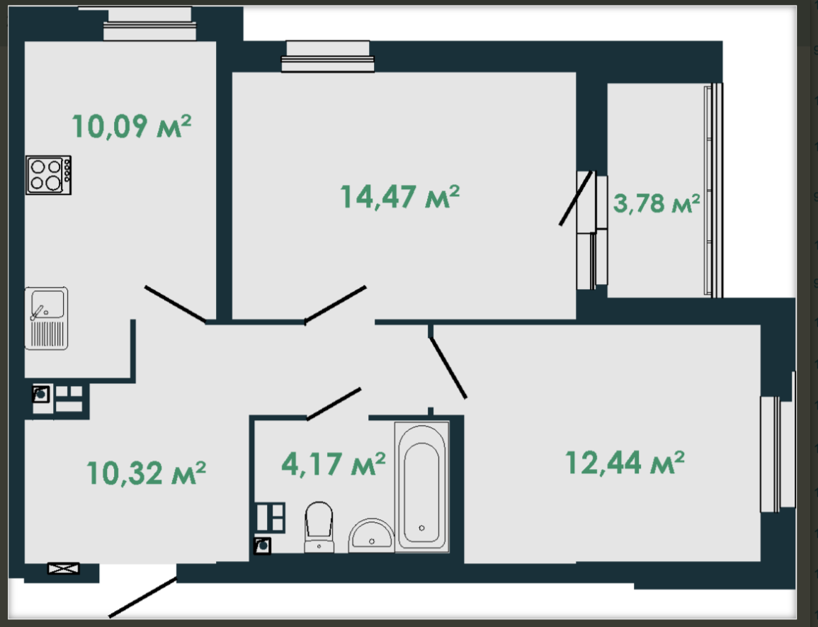 Площадь кухни 10.09 м2