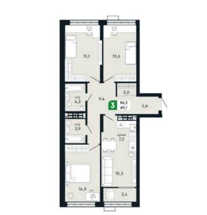 Общая площадь 89.7 м2