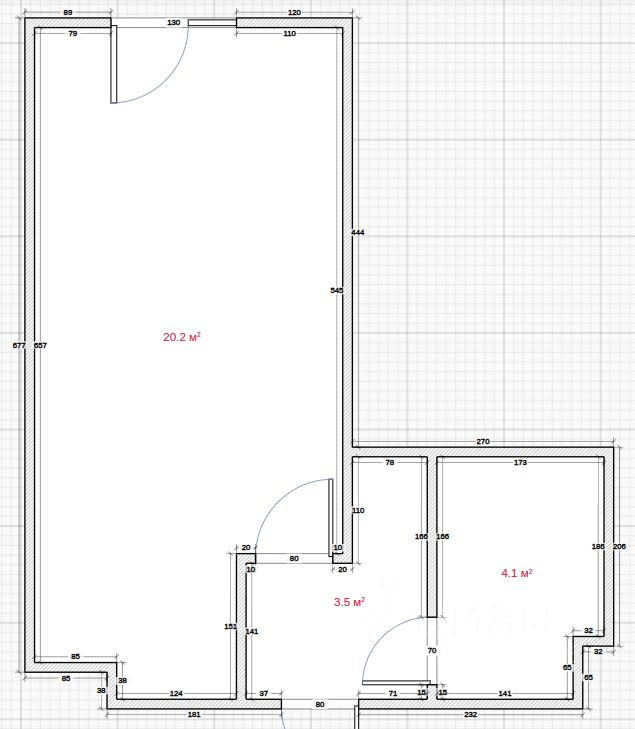 Общая площадь 28.8 м2