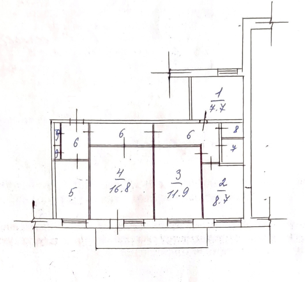 В квартире практически нет несущих стен, соответственно, можно перепланировать квартиру под собственный проект.