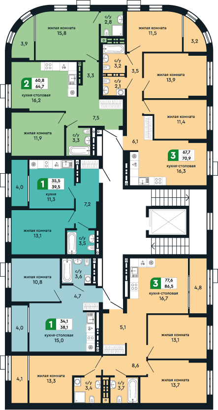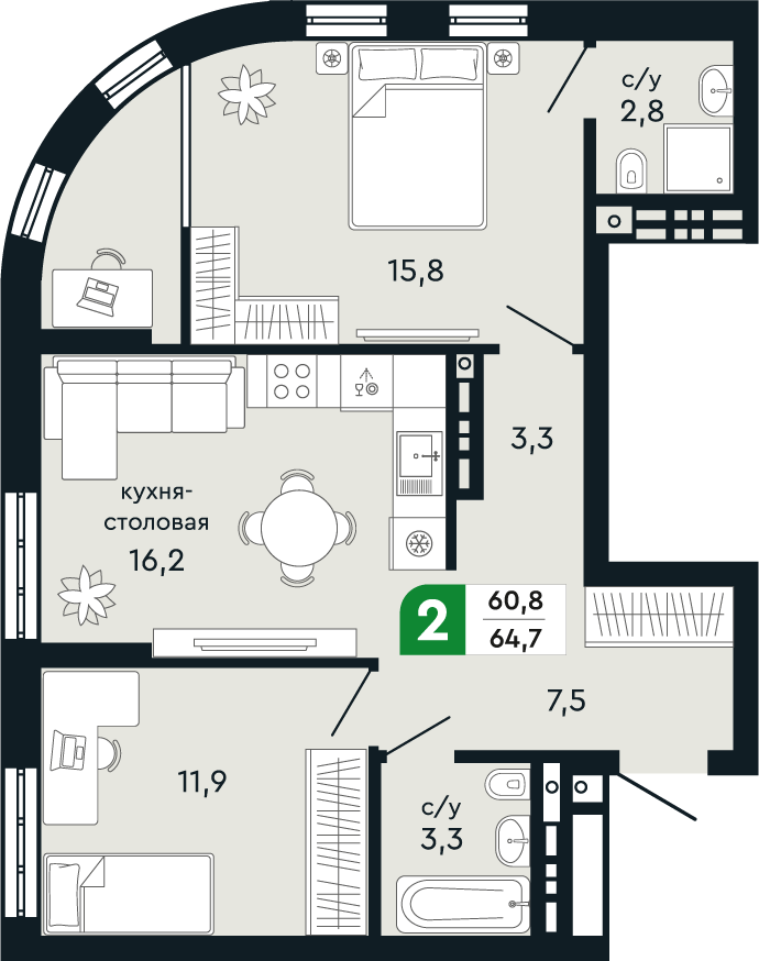Общая площадь 64.7 м2