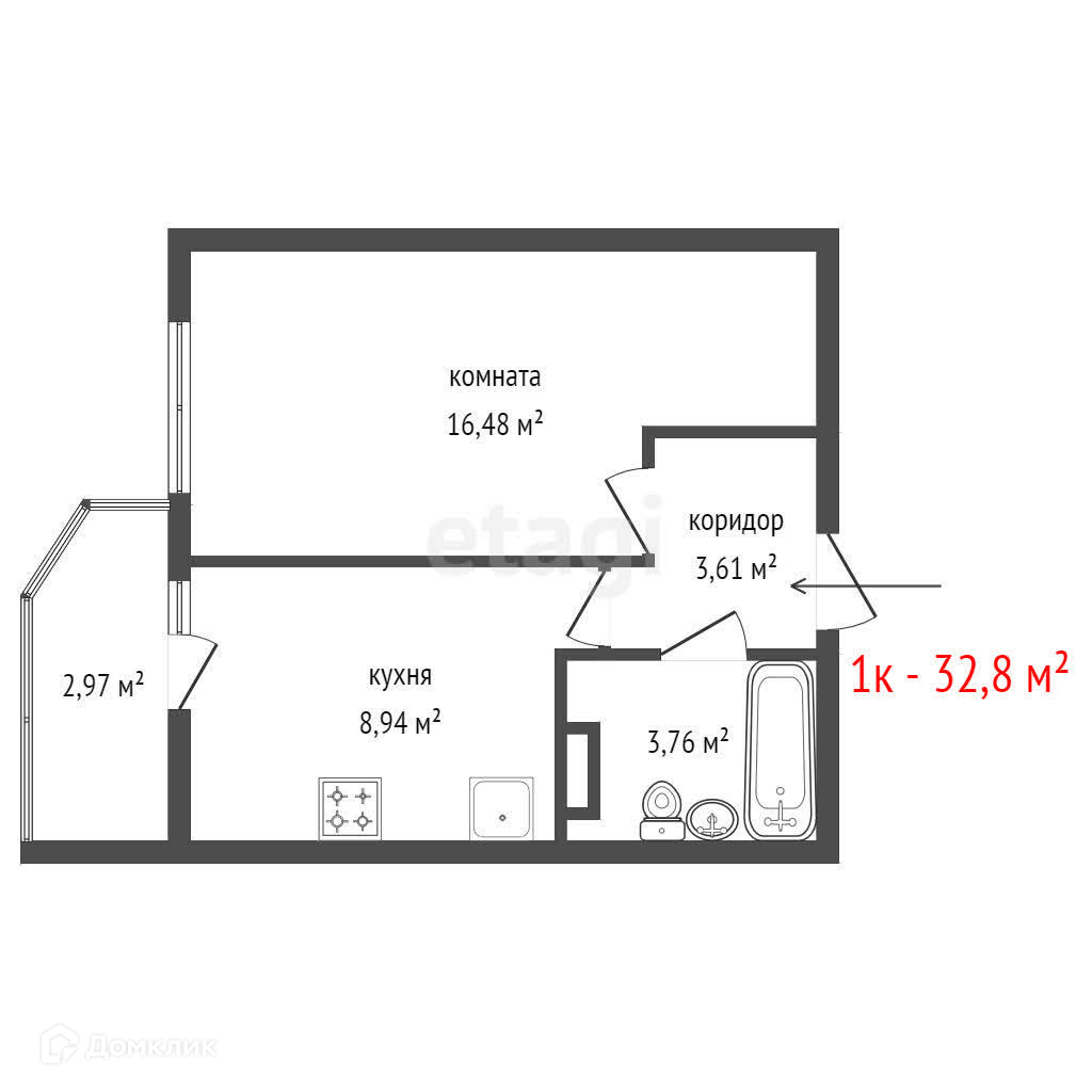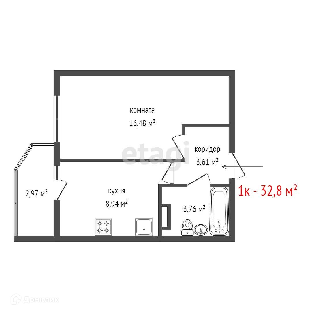 Общая площадь 32.8 м2