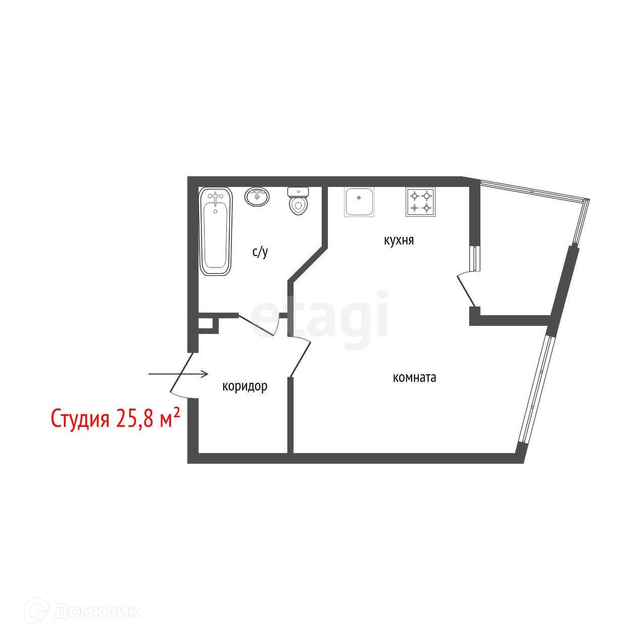 Общая площадь 25.8 м2