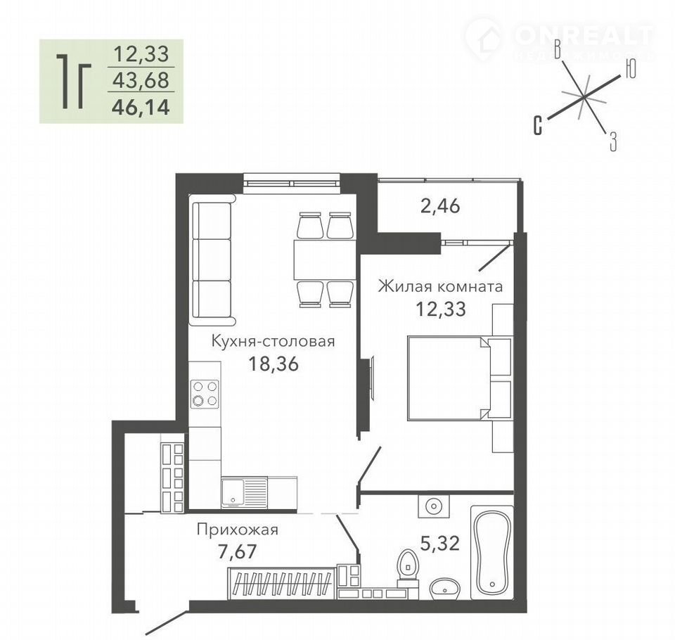 Общая площадь 46 м2