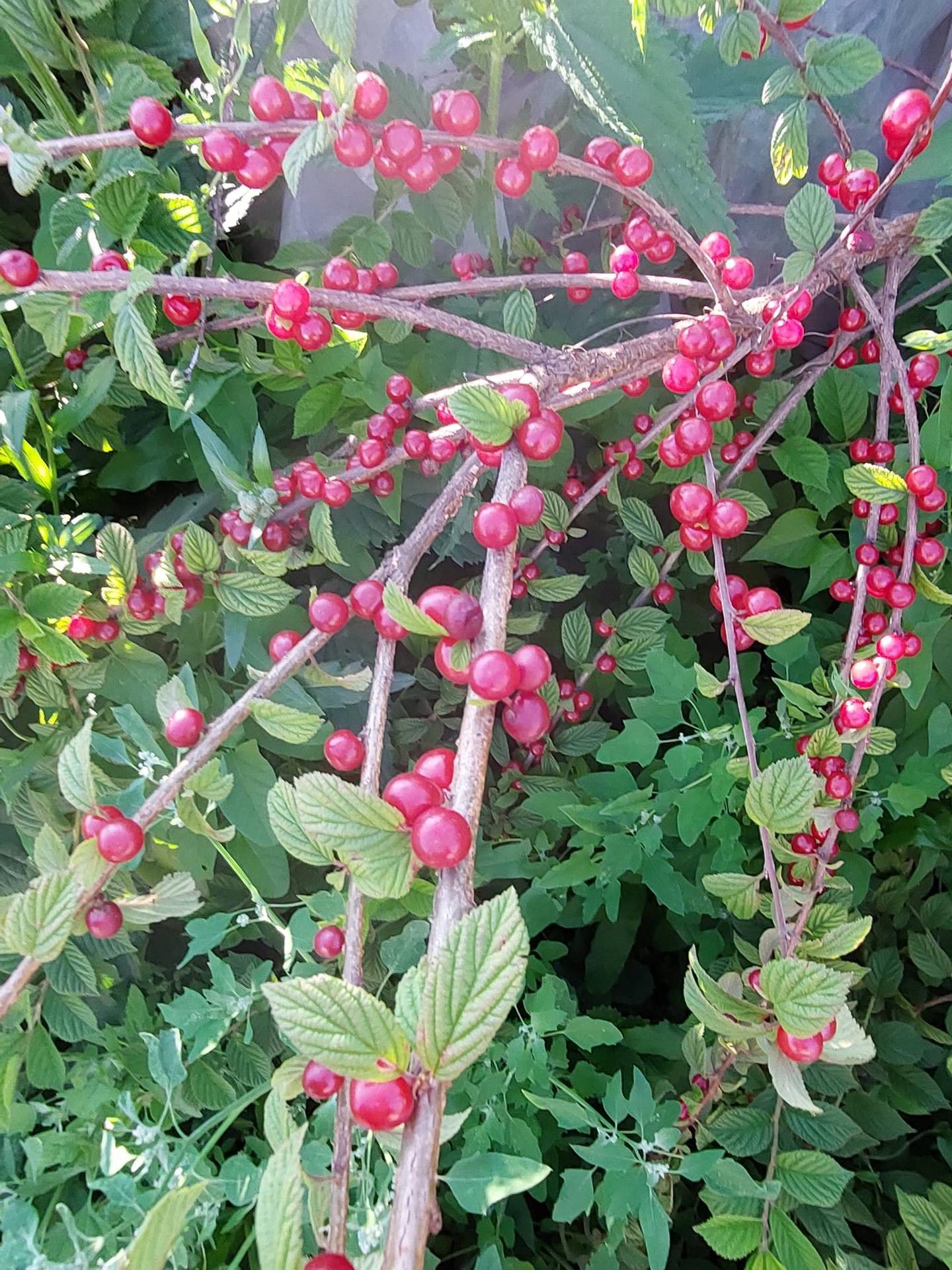 Много насаждений: различные сорта вишни,крыжовник,две яблони,черноплодная рябина, смородина, малина, слива.
