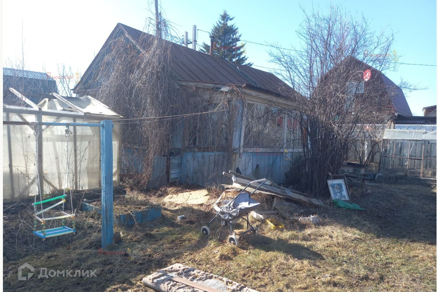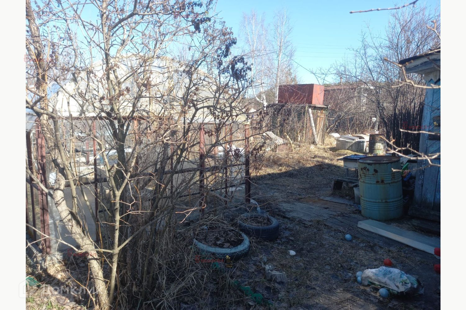 Есть летний садовый домик, две теплицы, сарай. На участке свой колодец, вода питьевая. Электричество есть, в саду новый трансформатор. На участке яблоня, смородина, ирга.