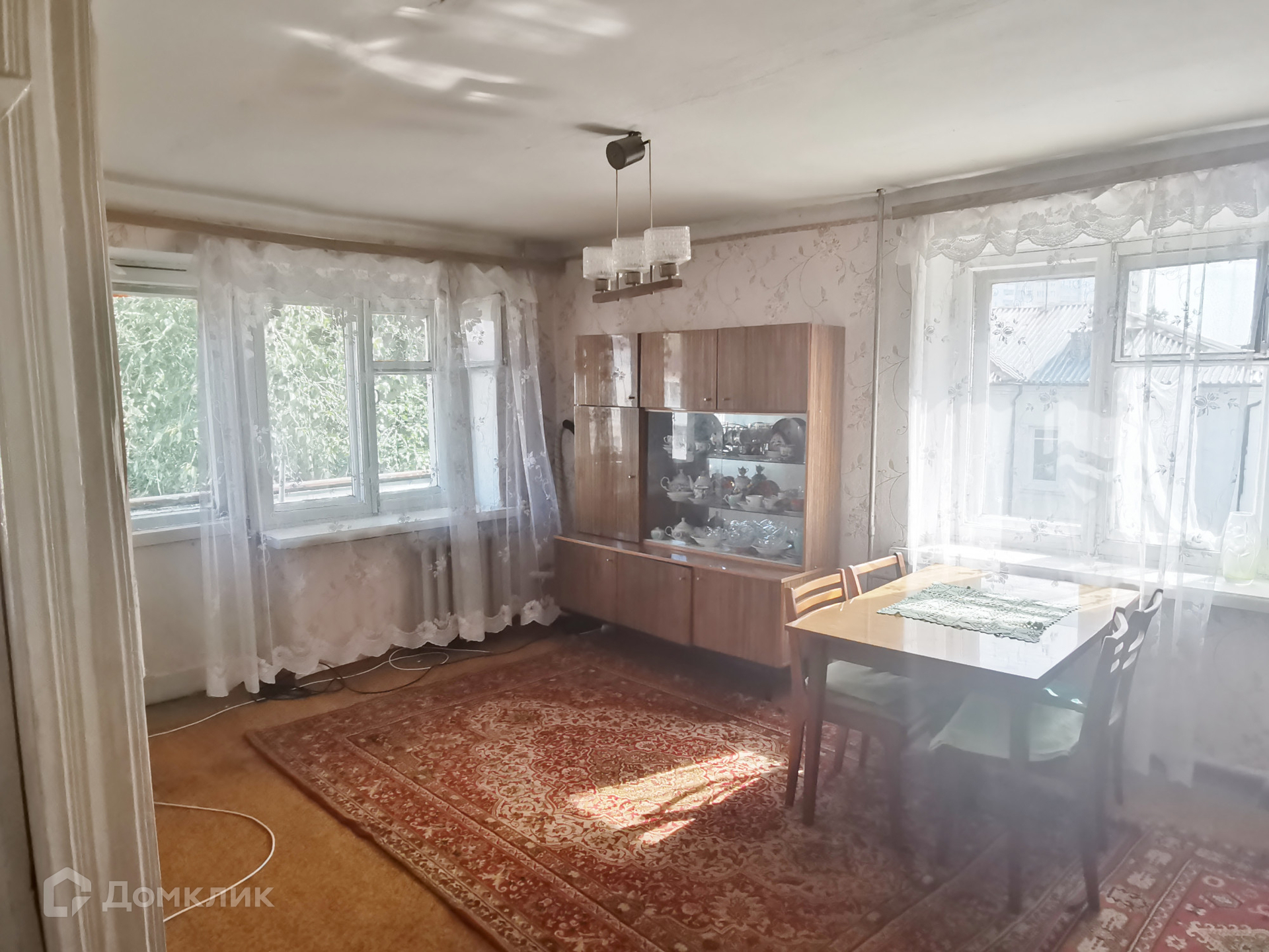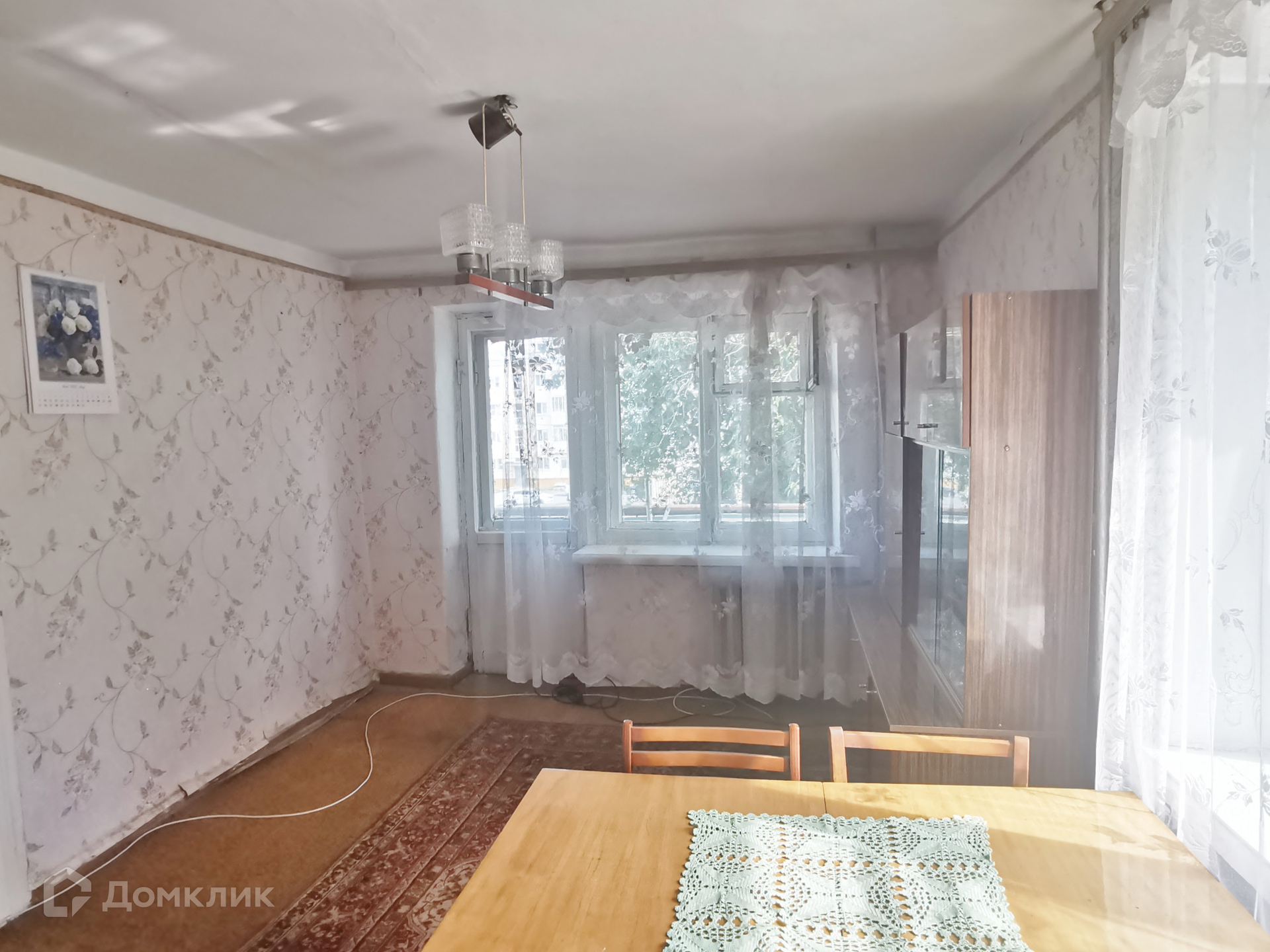 В квартире имеется два кресла, стол в комнате, 4 стула, шкафы, обеденный стол, 4 табурета.