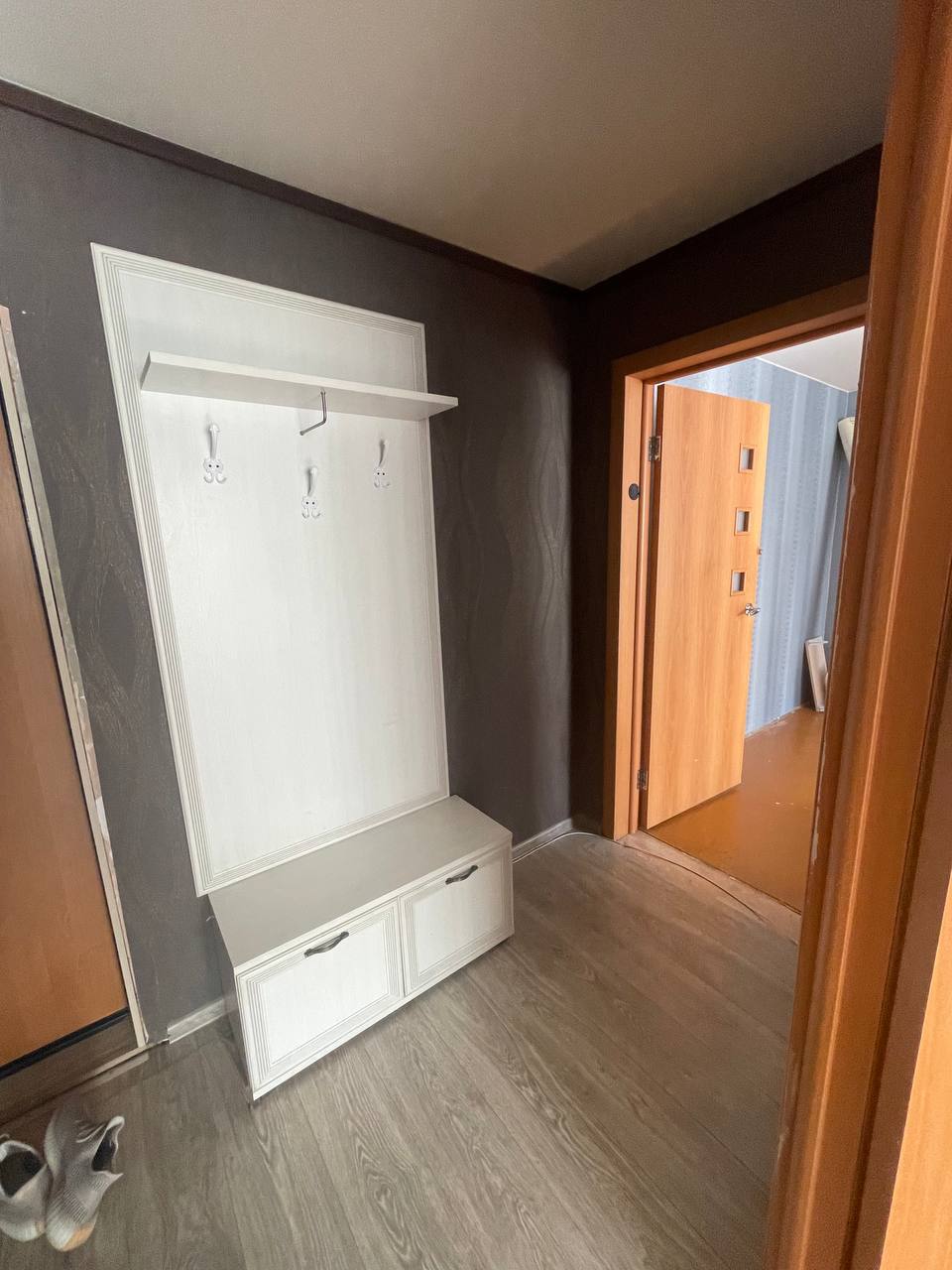 В КОМНАТЕ С КОРИЧНЕВЫМ ПОЛОМ БУДЕТ ВЫВЕЗЕНА СТЕНКА ПРЕДЫДУЩИМИ ЖИЛЬЦАМИ.