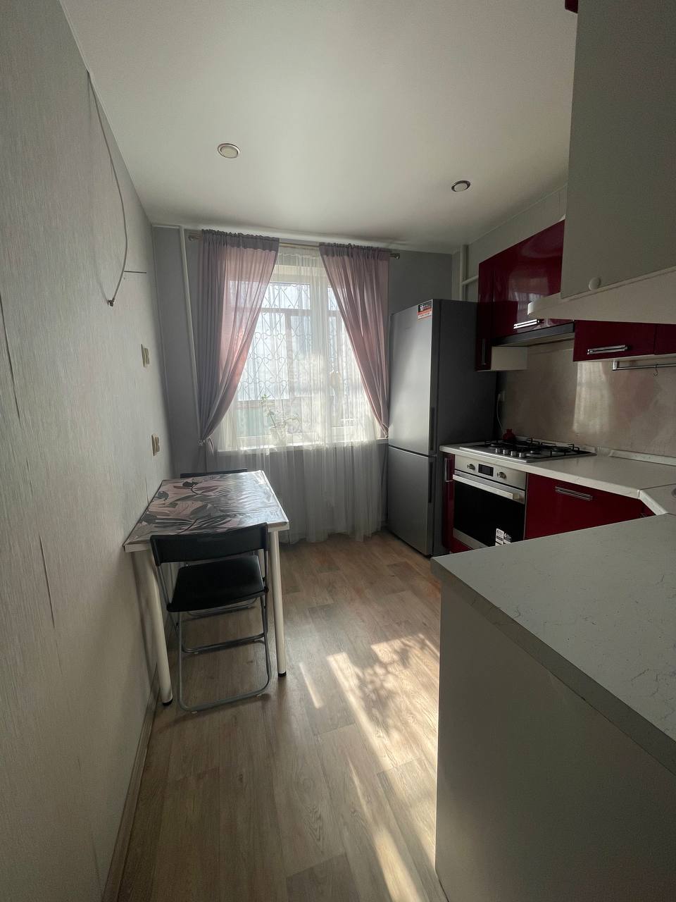 Из бытовой техники имеется: новый холодильник с технологией "no frost", газовая плита, духовой шкаф, ИМЕЕТСЯ ВОДОНАГРЕВАТЕЛЬ. Микроволновка отсутствует.
