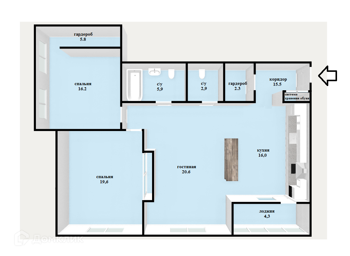 Общая площадь : 104.6 м2