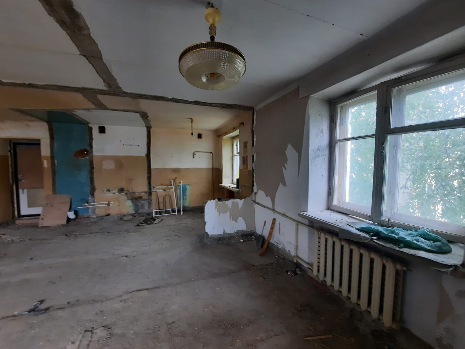 Квартира расположена на пятом этаже, подготовлена к полному ремонту, все стены убраны, черновая отделка.