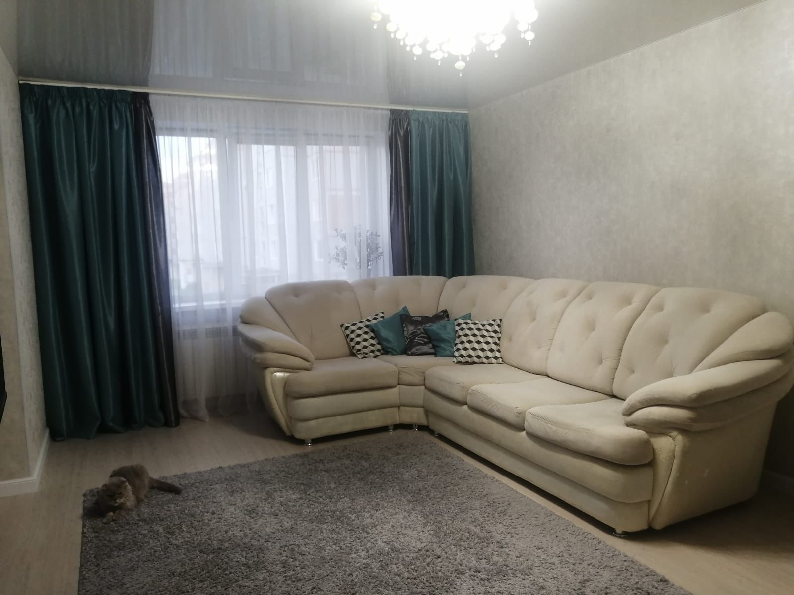 В квартире сделан качественный ремонт в 2022 году, в 2024 году произведена замена пола. Установлены стеклопакеты, балкон остеклен и обшит, натяжной потолок, в ванне кафельная плитка, джакузи, водонагреватель. Остается вся мебель, что Вы видите и бытовая техника (новая 2024г.), кроме телевизора и стиральной машины!