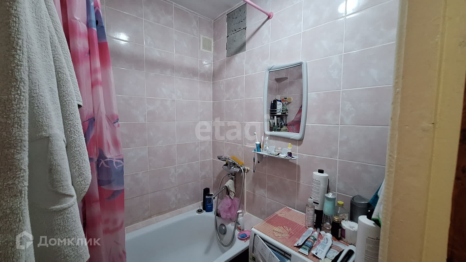 Ванная облицована кафельной плиткой.