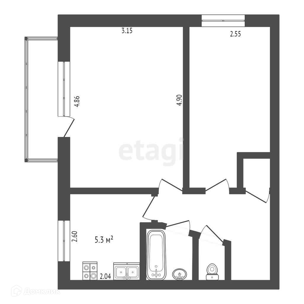 Балкон, лоджия 1 балкон