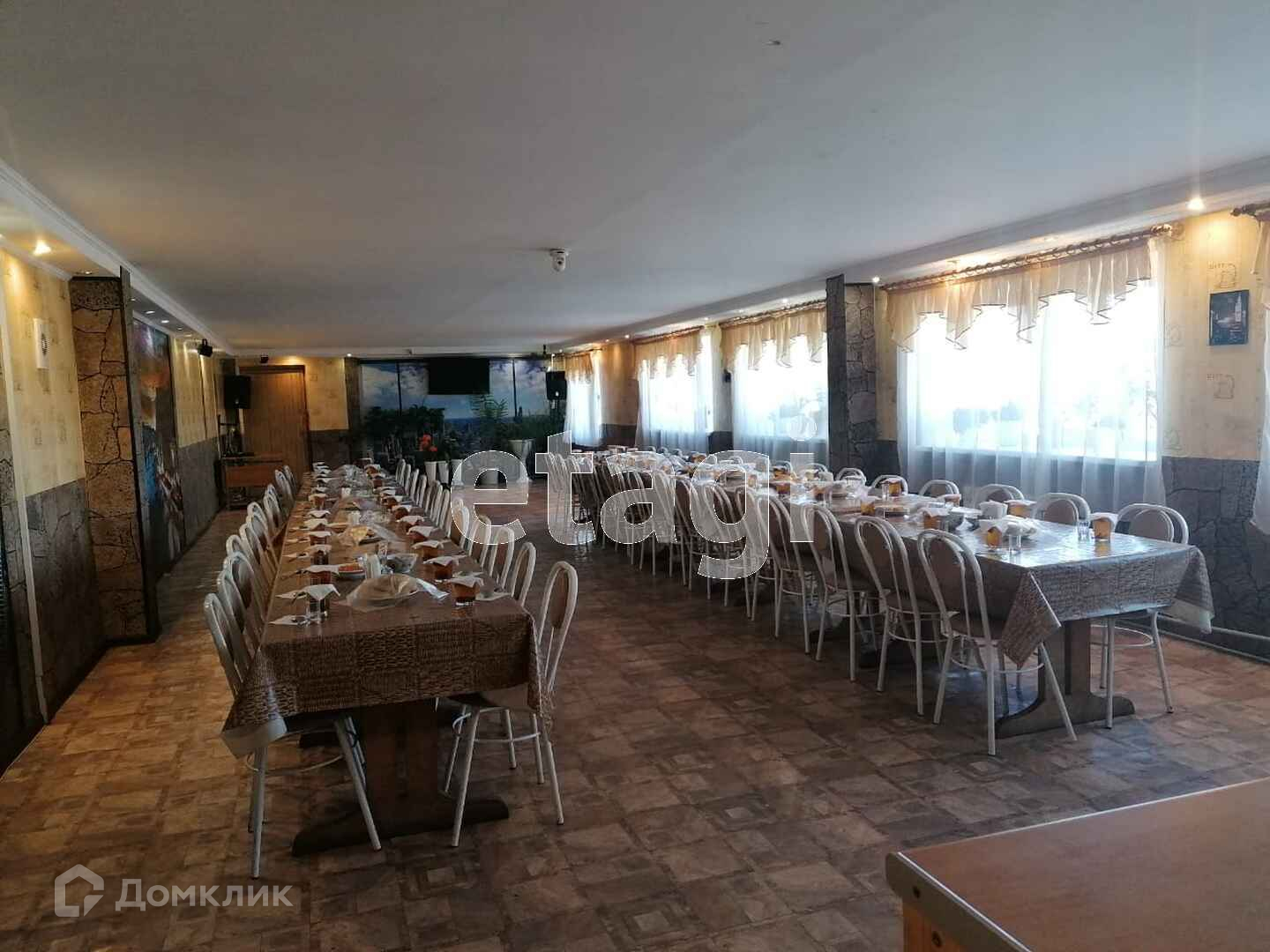Между 1-ым и 2-ым этажом находится действующее кафе - общ. пл. 198 кв.м. Сделан капитальный ремонт. Пластиковые окна. Проведена новая система отопления и водоснабжения. Заменена электрика. Установлена охранно-пожарная сигнализация, видеонаблюдение.