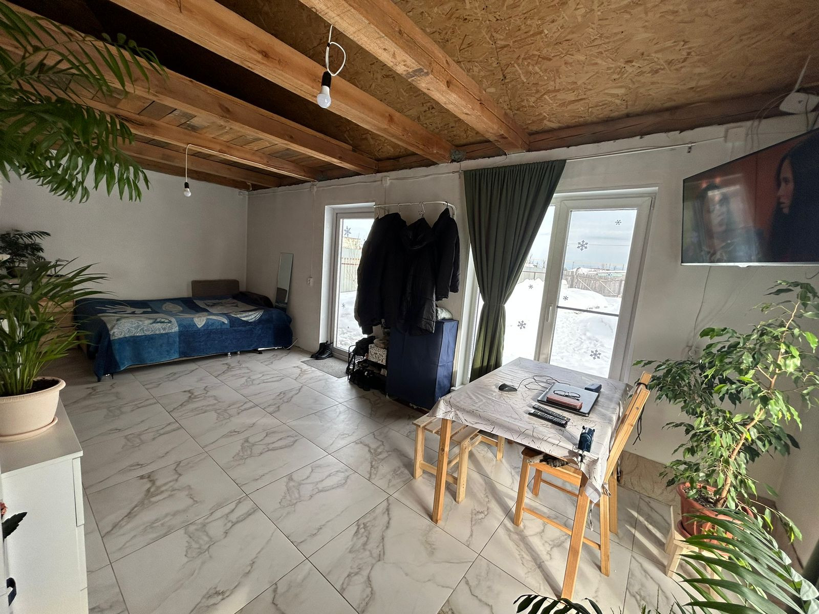Продается земельный участок площадью 7,5 соток. На участке построена благоустроенная баня-дом с мансардой, общей площадью 51 кв.м. Первый этаж: 35 кв.м., теплый пол (плитка), туалет, парилка с душем, кухня, комната (большие 3 окна). Мансарда: 16 кв.м., спальные места. В доме есть телевидение, интернет. В доме есть скважина, центральная городская канализация, эл.котел, газ -у дома. На земельном участке - каркас беседки 35 кв.м. с фундаментом под мангал и печь. На участке - цветы, кустарники, сосна, кедр и др., газон.