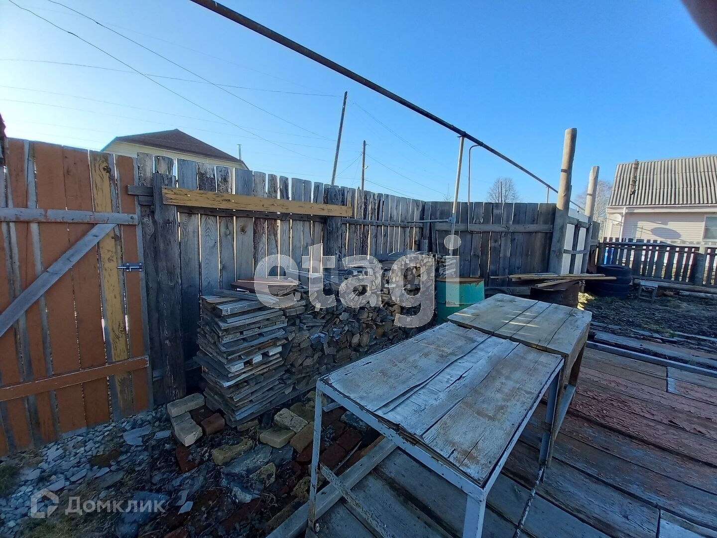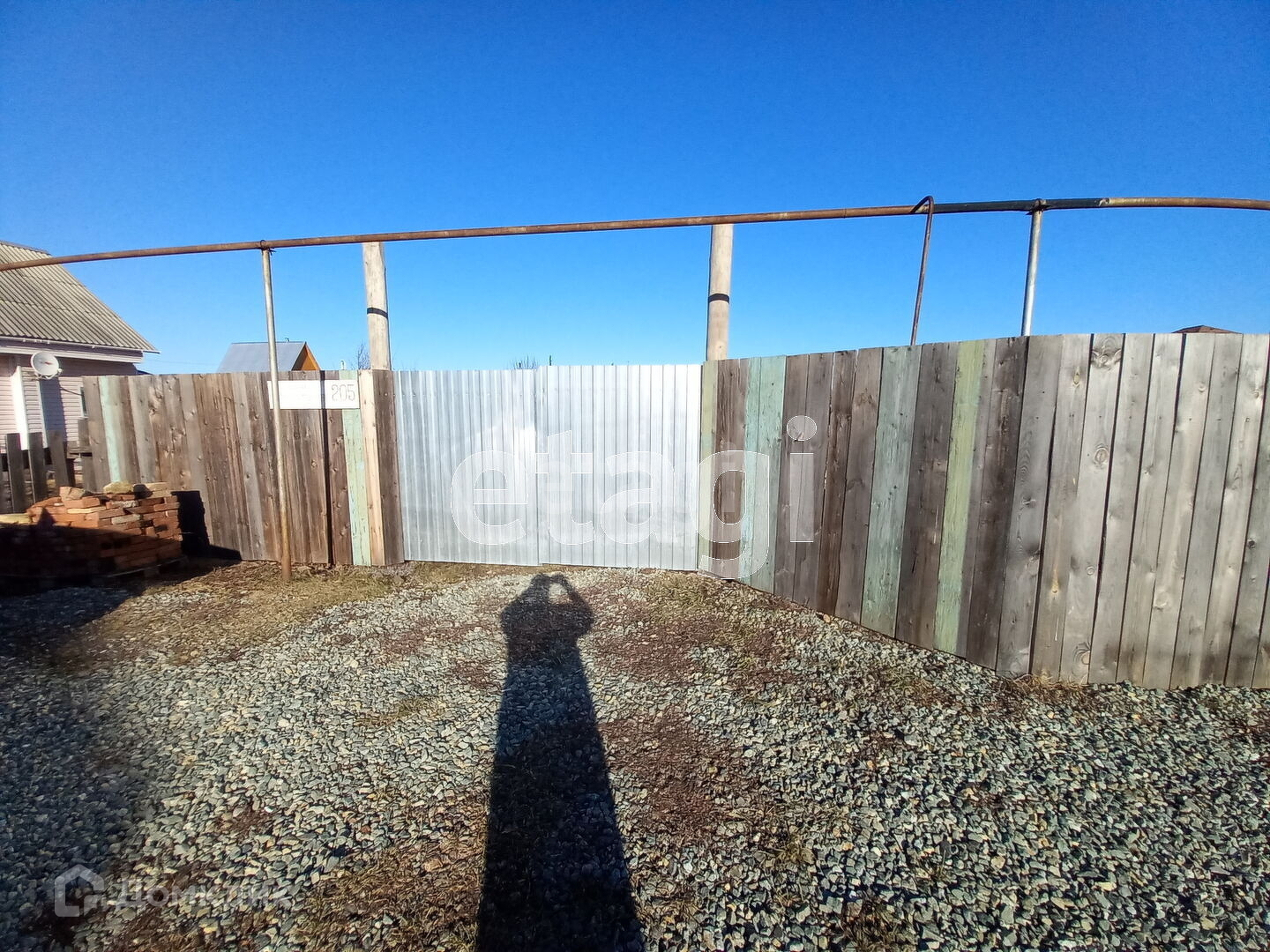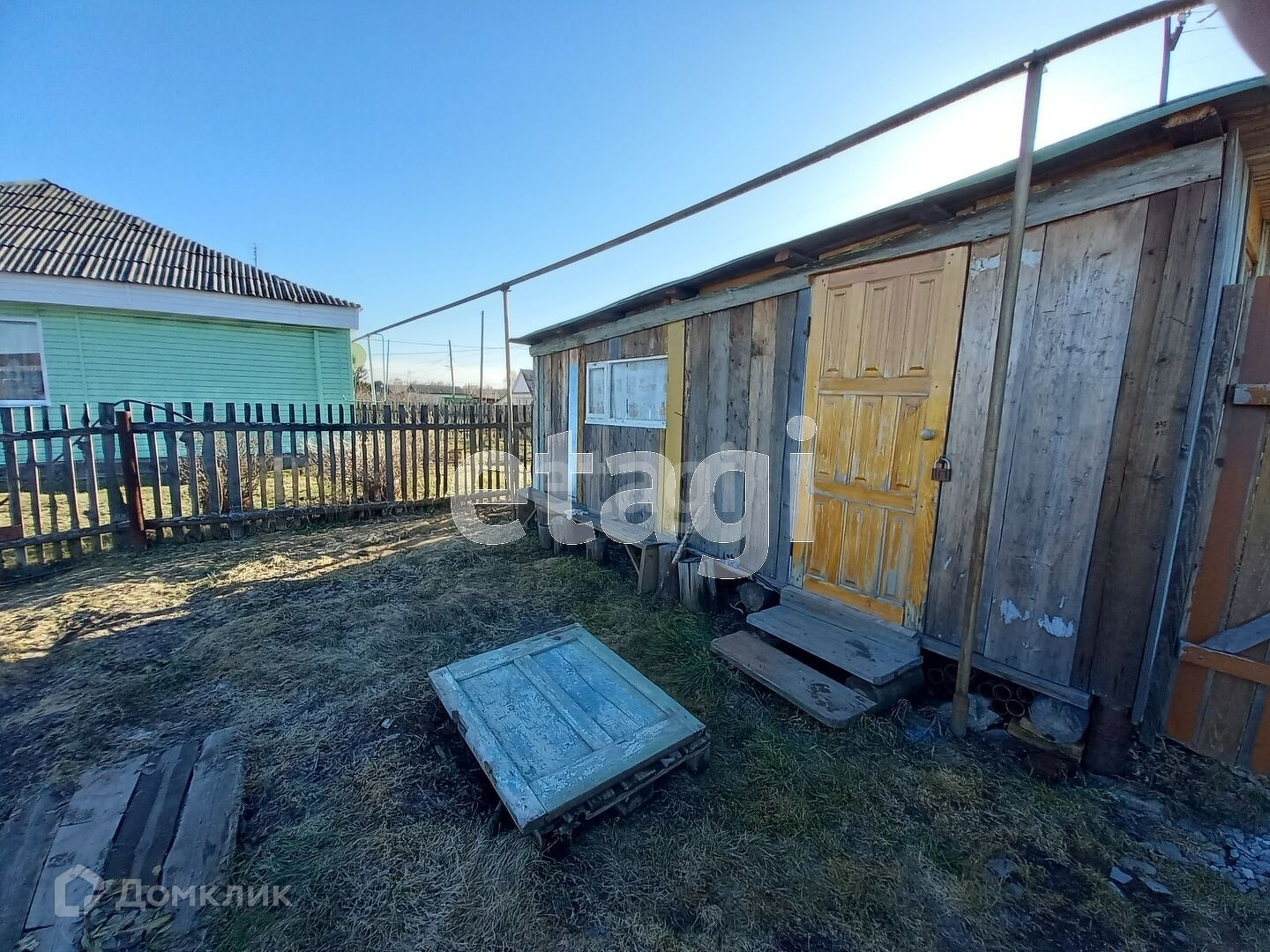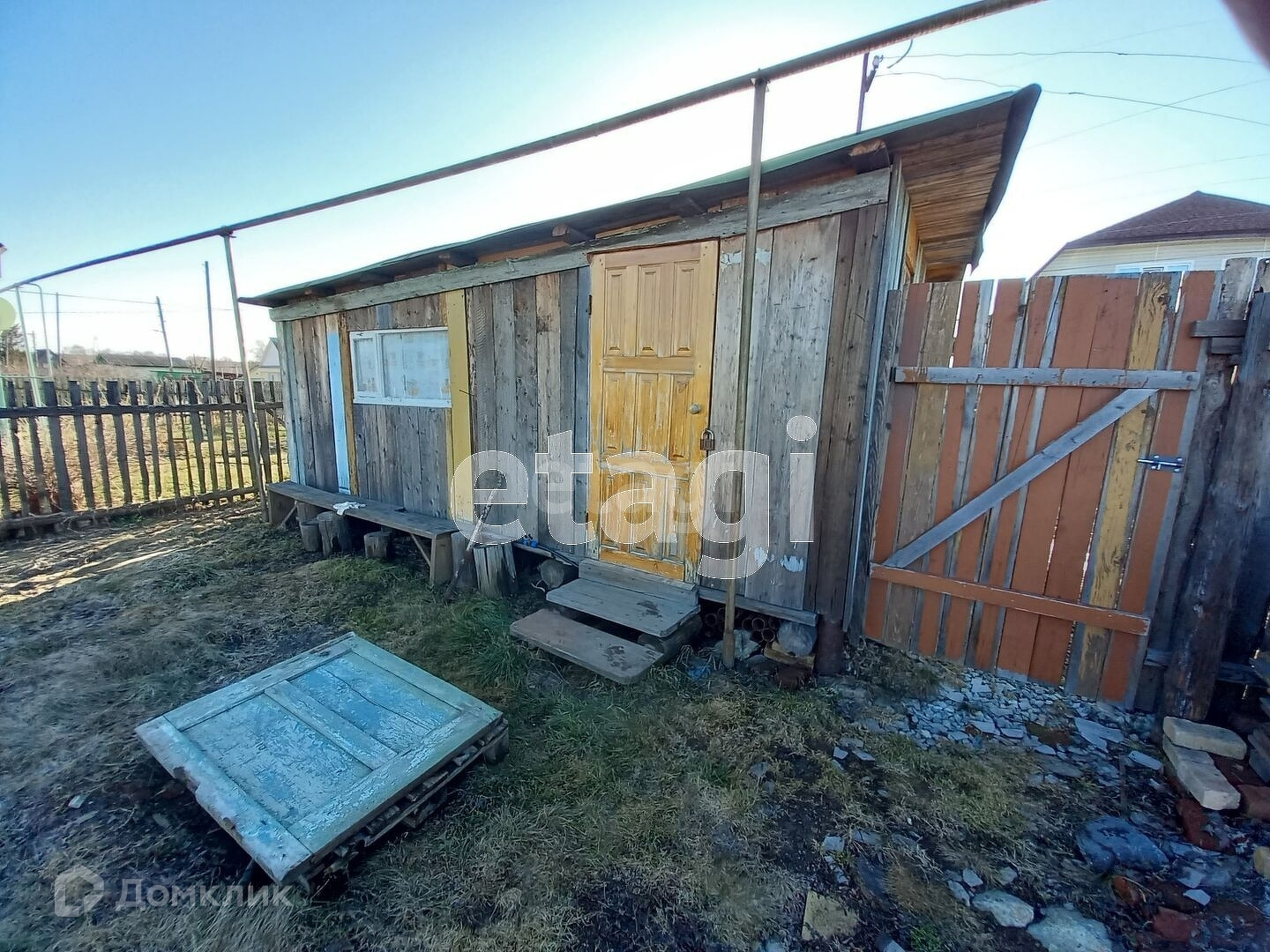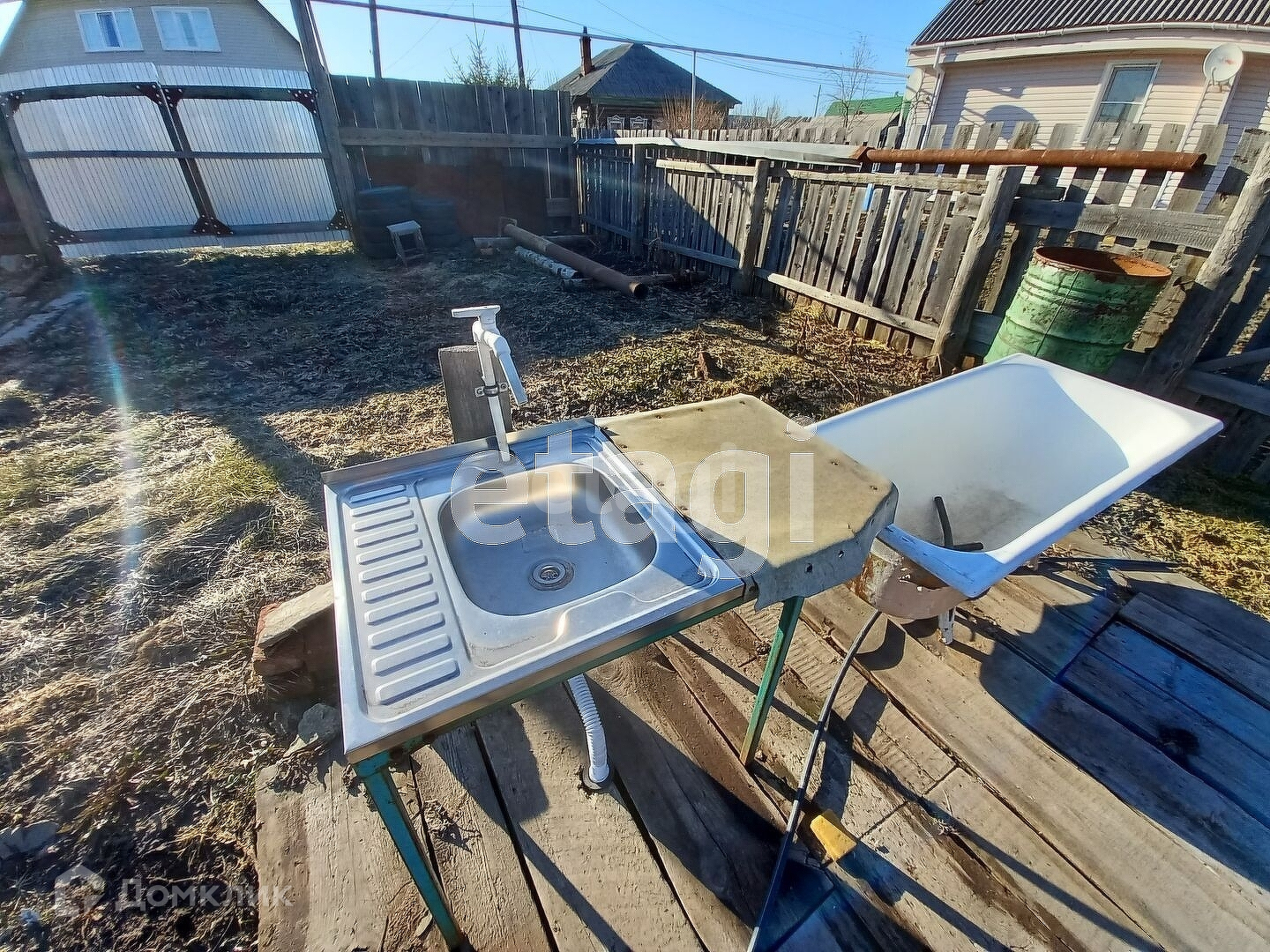 Из построек: беседка закрытая и железный гараж. Из коммуникации: скважина, электричество, газовая труба проходит по улице.