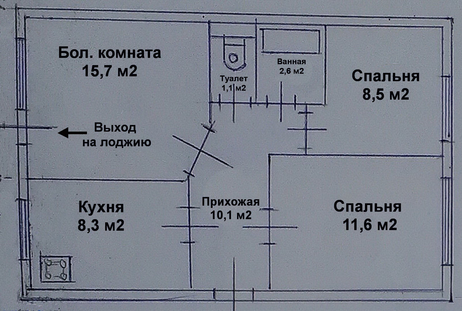 - отличная и рациональная планировка (распашонка), кухня (8,3 м2) и большая комната (15,7 м2) окнами на улицу, две спальни (11,6 м2 + 8,5 м2) – во двор;