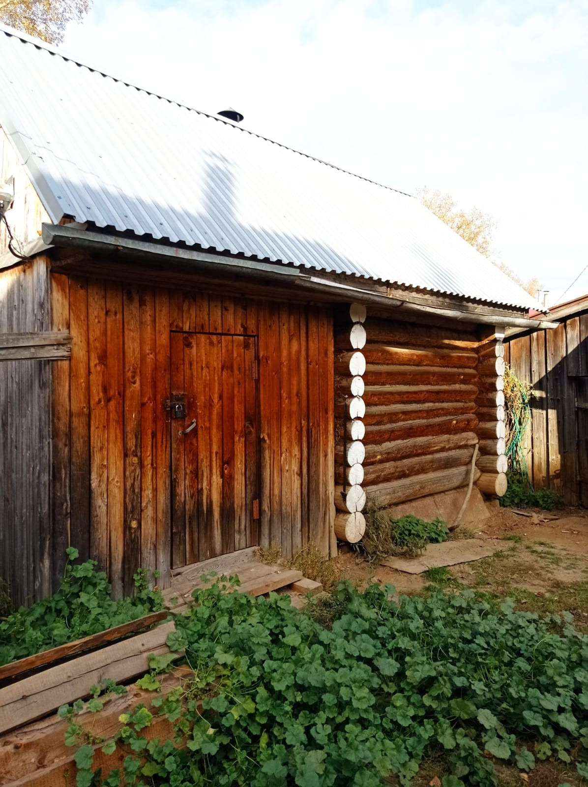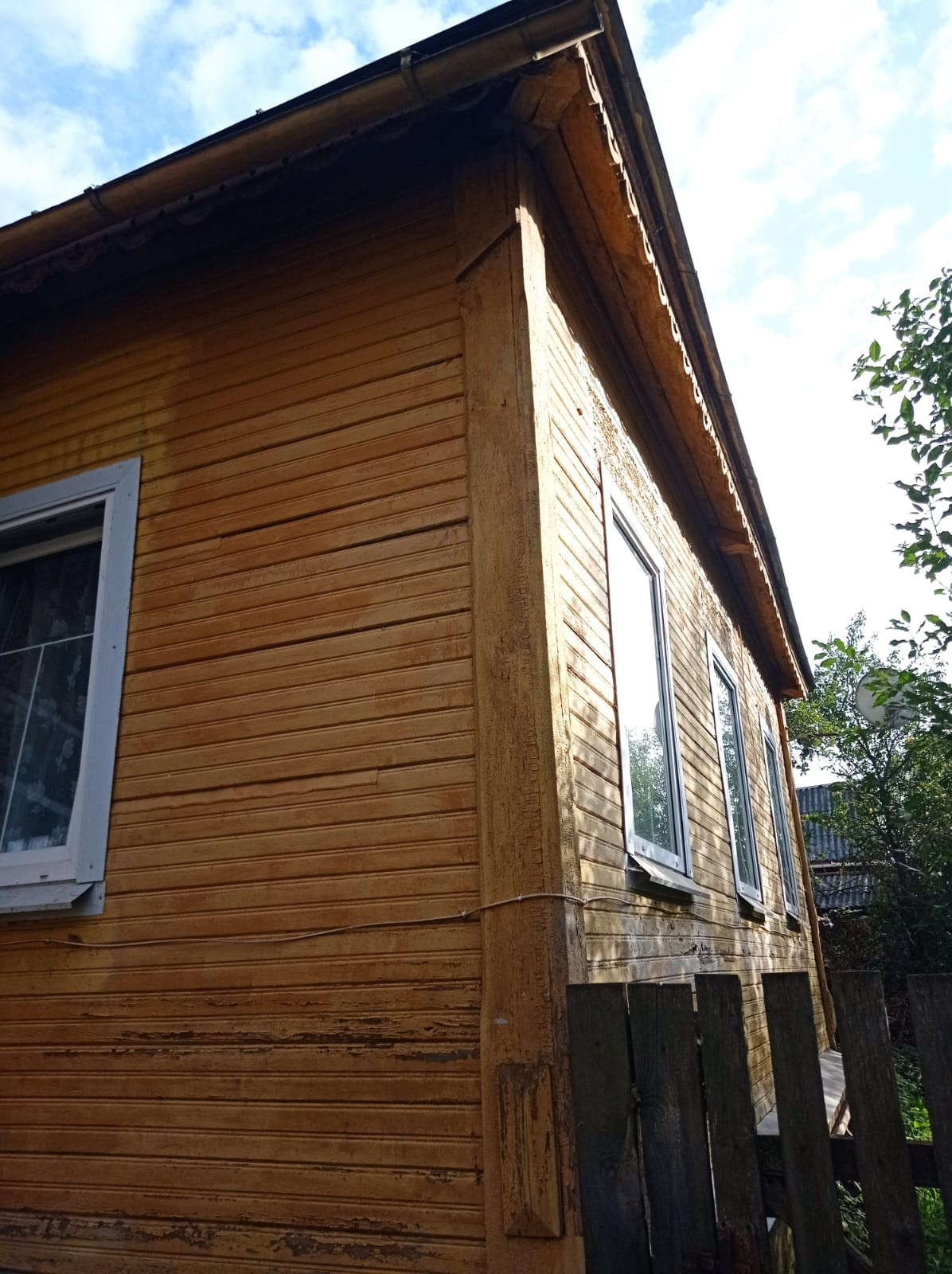 Есть водопровод ,теплый туалет,есть баня ,гараж..Вогороде есть яблоки,ягоды.Дорога асвальтированая до рынка 15 минут ходьбы как до центра 10 минут.Дом теплый
