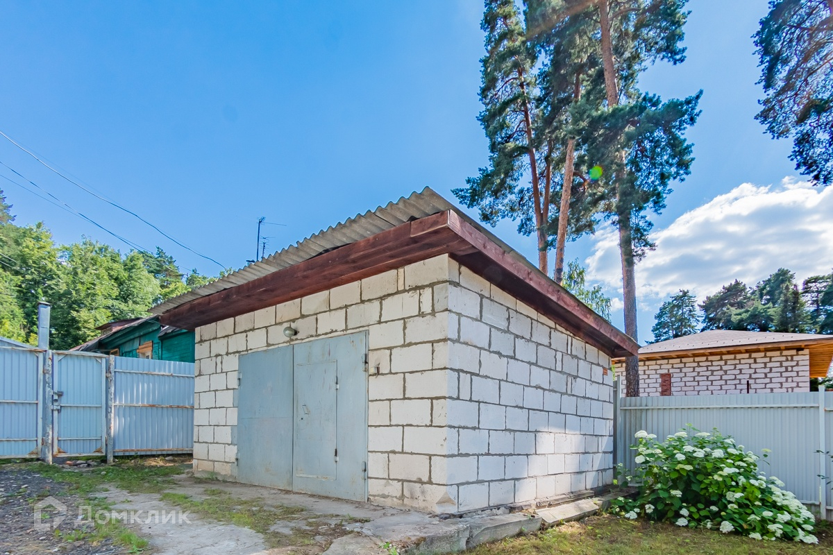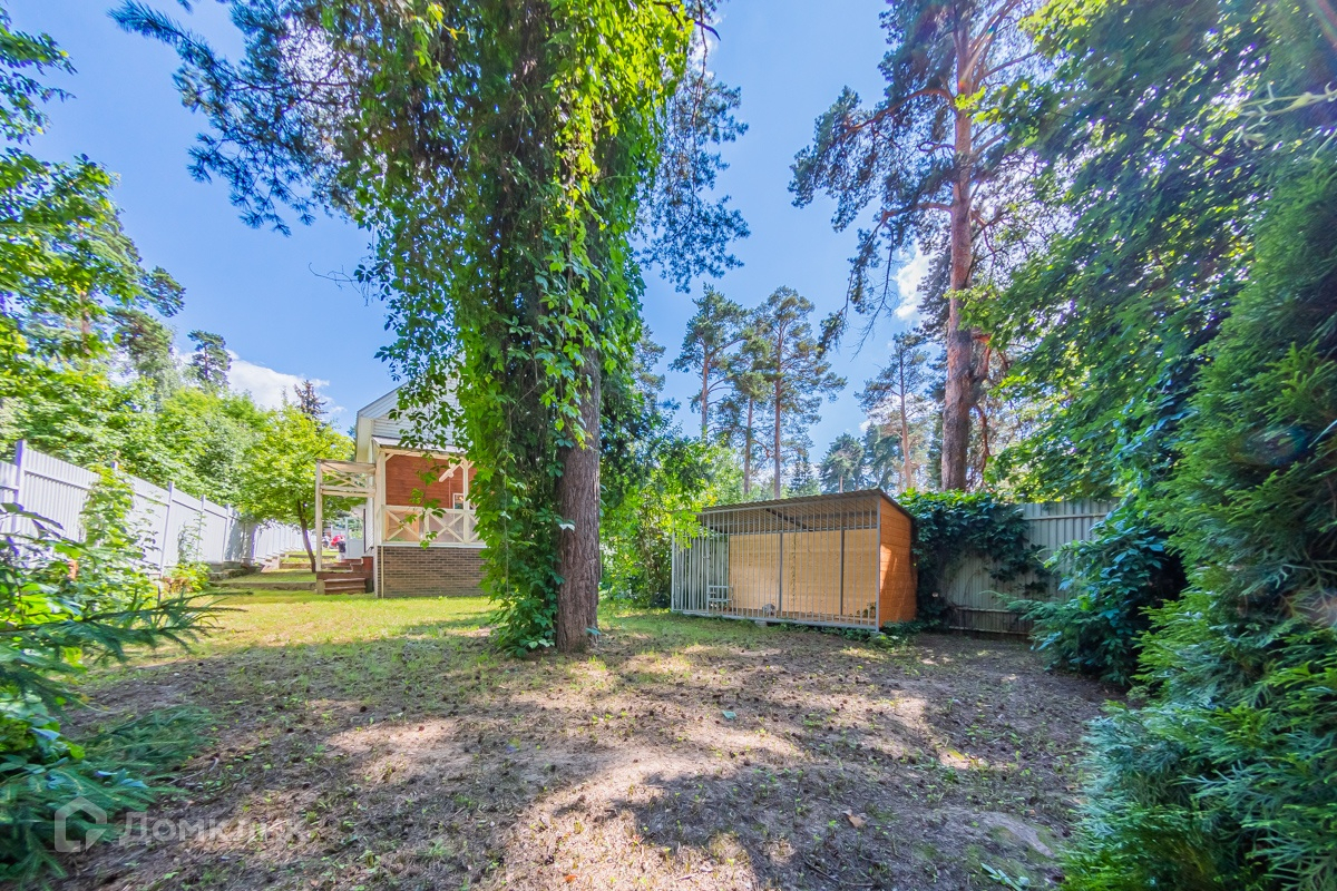 На участке большой кирпичный гараж и вольер для большой собаки.