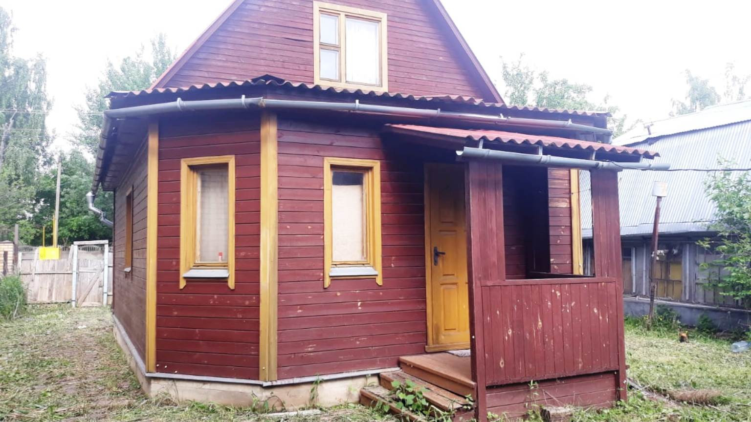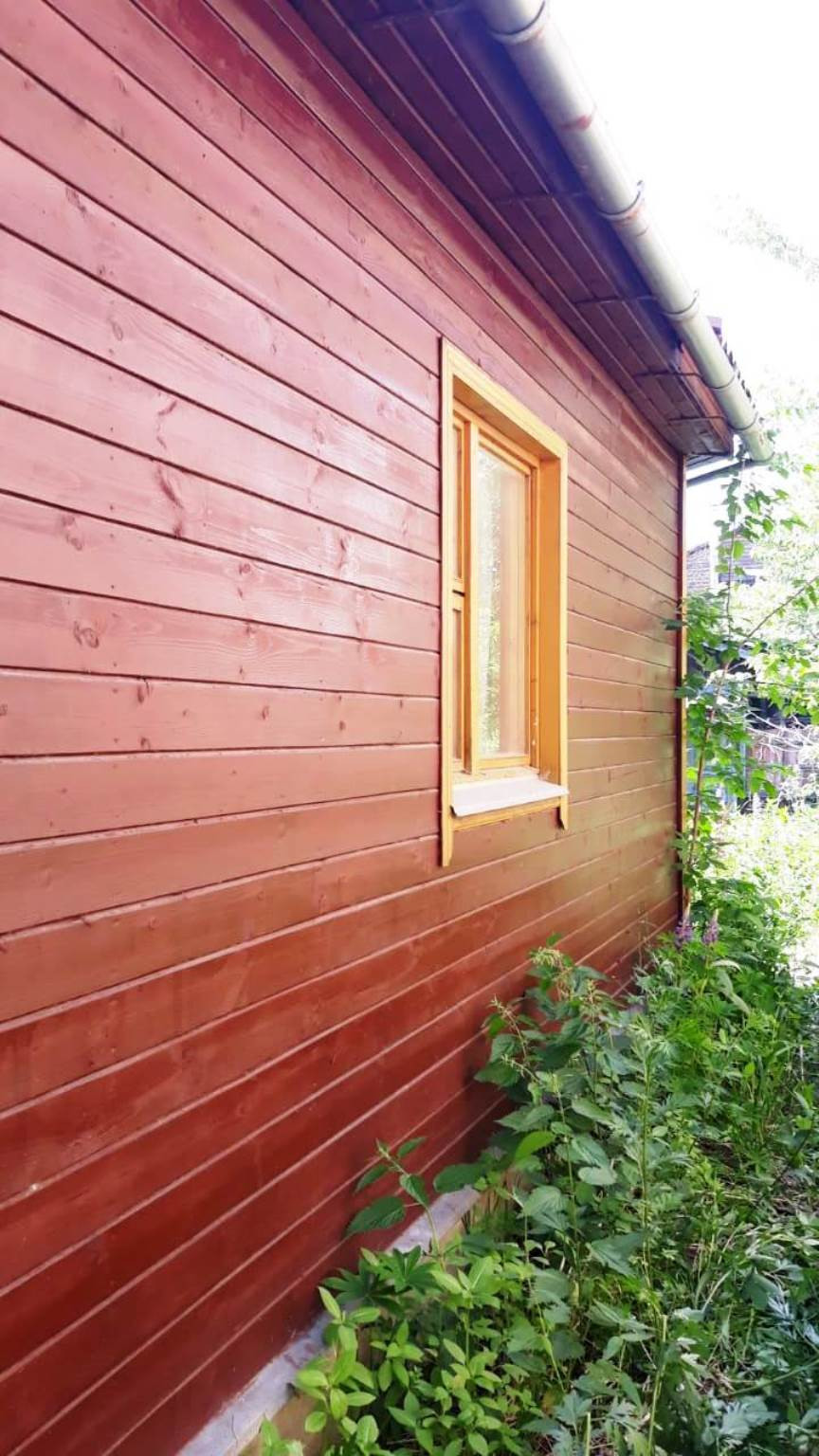 Продается жилой 2-этажный дом 68 кв.м. на участке 4,2 сотки. Участок на первой линии, правильной прямоугольной формы, имеются плодовые деревья. Вход отдельный, с дороги. Дом построен в 2007 году (проект Чехов-1, документация в наличии). Дом 6*6 метров с эркерной верандой (6*2,5 метров). Материал дома и веранды - брус 15*15. Фундамент ленточный, монолитный, армированный, высота 60, ширина 30 см. На первом этаже две комнаты 18 и 6,8 кв.м, холл 8 кв.м. Общая жилая площадь 42,4 кв.м. В холле лестница на второй этаж. Высота потолков первого этажа 2,55 метров, окна деревянные двойные, двери филенчатые. Стены и потолок обшиты вагонкой. На втором этаже небольшой холл и комната 17 кв.м. Высота потолка на втором этаже 2,3 метра. Крыша двускатная, покрыта красным шифером. Дом и участок зарегистрированы. Дом жилой, возможна регистрация по месту жительства. 1 собственник. Свободная продажа. В 10 метрах от входа находится газораспределитель, в 30 метрах от входа - колонка с водой. На территории участка проведены электричество 2 Квт и вода. Вода чистая (гор.водопровод) и доступна с апреля по октябрь.