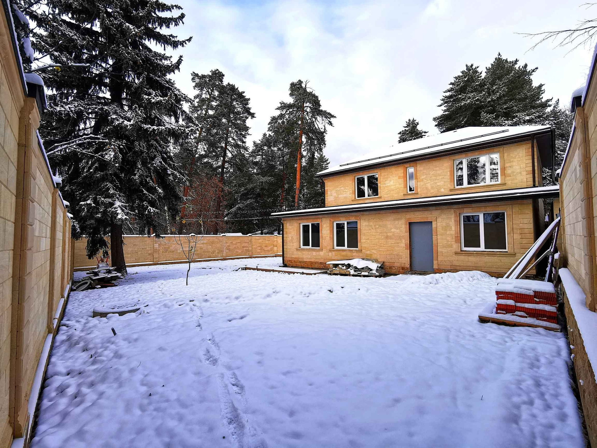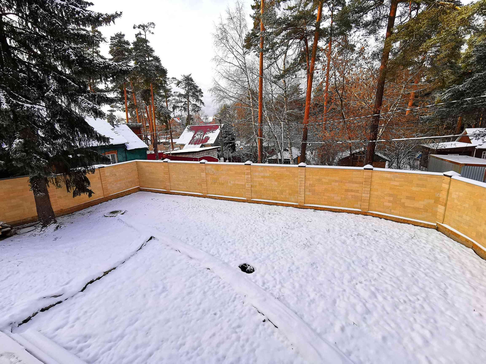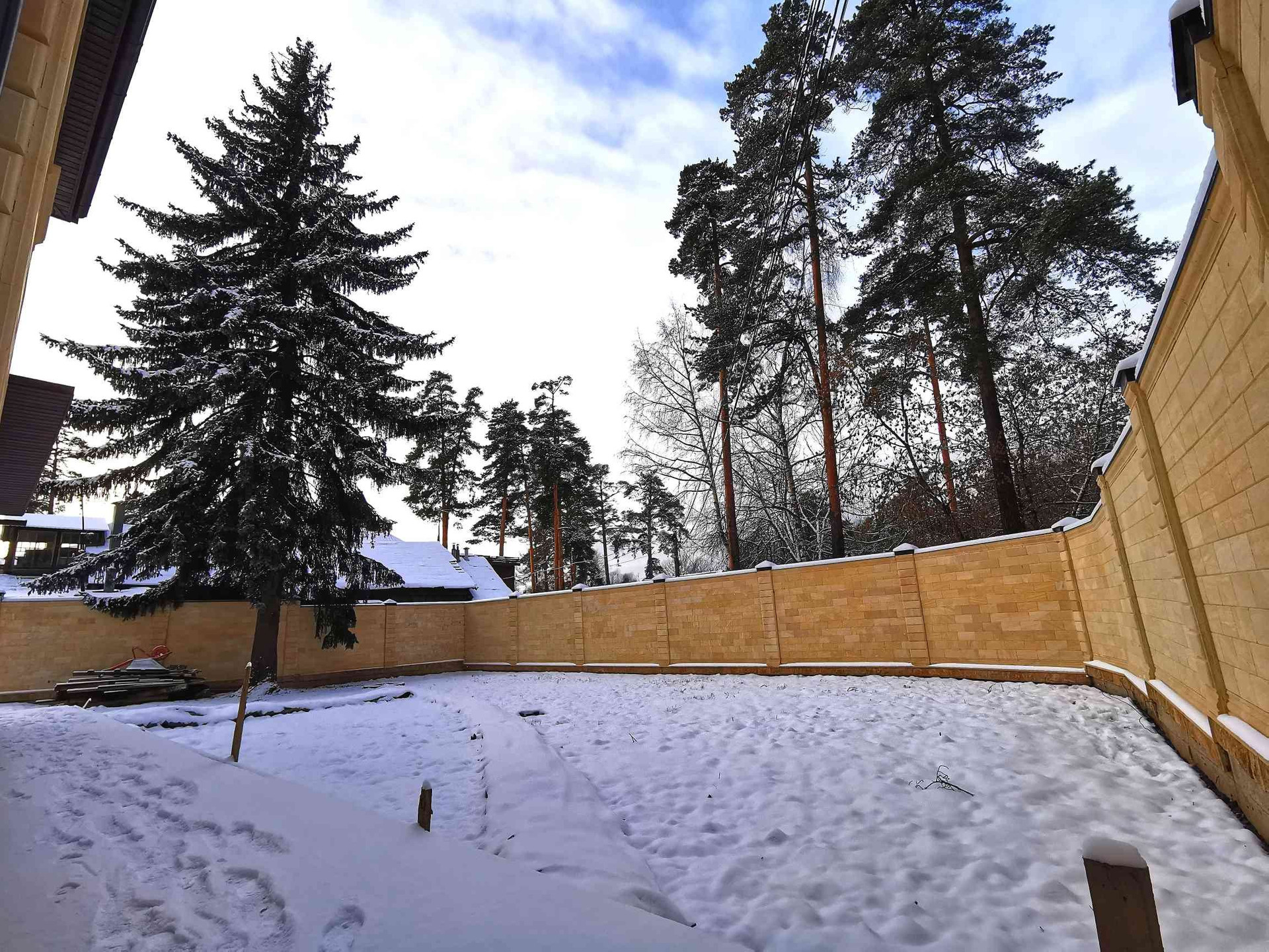 Участок ровный ИЖС 6 соток, имеет правильную форму, каменный забор по всему периметру, перед домом есть собственная парковка.