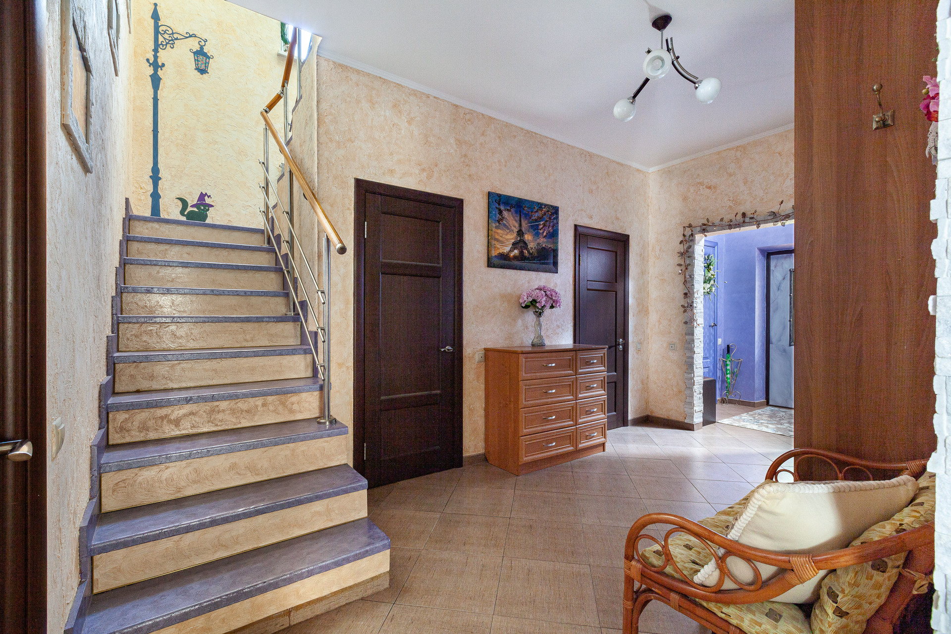 Городской дом 270 кв м, 2 этажа и мансарда (помещение свободного назначения 80 кв.м с мансардными окнами), пенобетонные блоки, утепленный, перекрытия ж/б, окна пвх, кровля-мягкая черепица; наружная отделка - жидкий камень COVERSTONE. Авторский дизайн интерьера выполнен по Фен-Шуй, с использованием дорогостоящих материалов в отделке, изящного декора и аксессуаров, а так же мебелью, большая часть которой, сделана по индивидуальному проекту на заказ. Кухонный гарнитур - пр-во Италия, столешницы выполнены из бразильского гранита. Стены- венецианская штукатурка и тканевые обои, декорированы кварцитом. Дополняет дизайн настоящий дровяной камин, с коваными дверцами по индивидуальному заказу. Яркий акцент в интерьере - настенные фрески в средиземноморском стиле. Сантехника - Jacob Delafon и смесители Crohe; полы - подогреваемые полы - зона кухни, холл и во всех с/у. в остальных помещениях - ламинат, ламинат с дизайном; Инженерия: газовое отопление, 2-х контурный котёл Baxi на 30 кВТ с бесперебойной системой электропитания В доме установлены фильтры воды - Гейзер Престиж М.