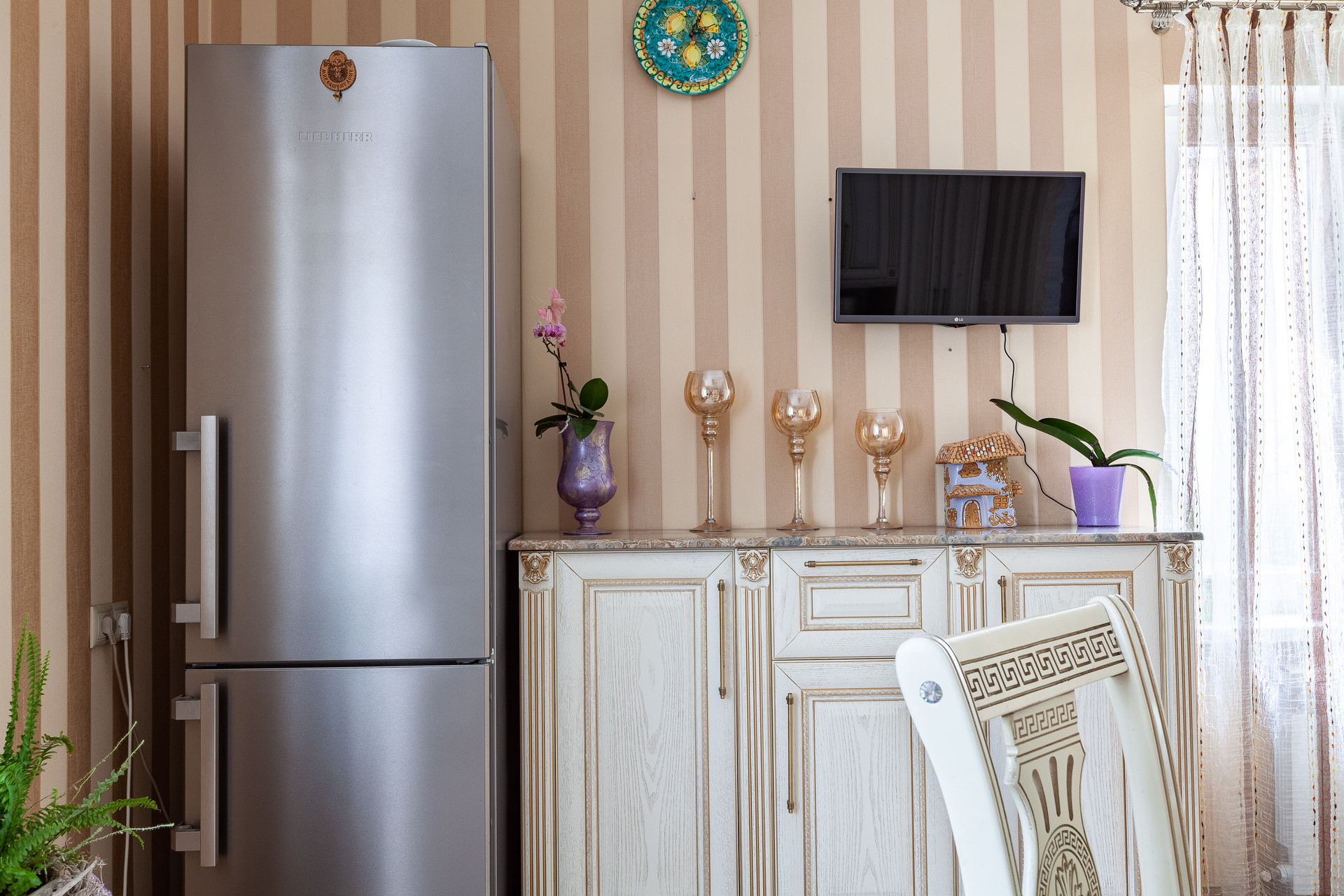 Планировка: 1-й этаж - прихожая 4.4 кв м, бойлерная 3.7 кв м, холл 14 кв м, с/у с душевой 4.4 кв м, кабинет 13.5 кв м, зона кухни 18.4 кв м, гостиная с эркером 30.9 кв м; 2-й этаж - коридор 16 кв м, мастер - спальня 19.5 кв м, спальня 18.4 кв м, спальня 14.2 кв м, ванная комната 6.4 кв м, с/у 5.2 кв м, гардеробная 3,8кв.м. Дом оснащён бытовой техникой "KUPPERSBERG", холодильник Liebherr. В кабинете хрустальная люстра пр-во Германия с пультом управления, напольные часы Tomas Stern.