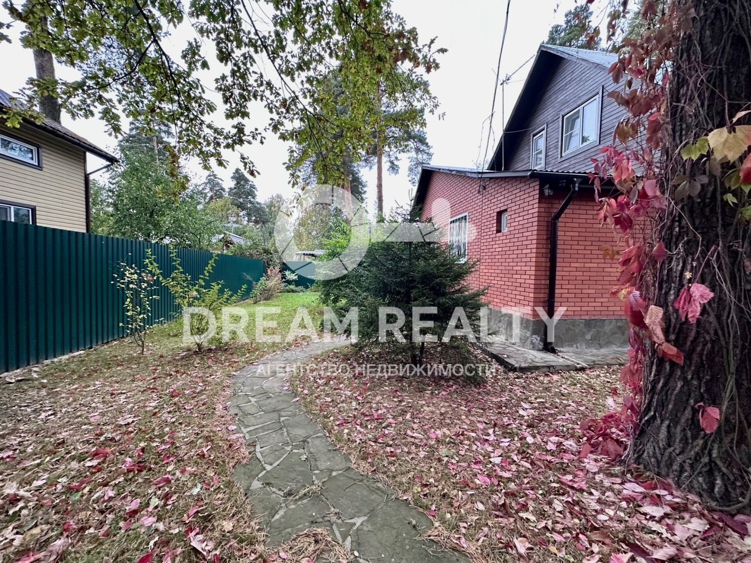 Дом расположен на участке 9.28 соток. Участок ровный и сухой, облагорожен, вымощены дорожки. Вдали от шумных дорог в окружении вековых деревьев. В 10-ти минутах пешком от ст. Расторгуево Павелецкого направления. (20 минут - и Вы в центре Москвы). Дом огорожен забором из металлического профиля, оснащен автоматическими воротами для заезда на парковку под навесом для одного авто. При желании можно увеличить.