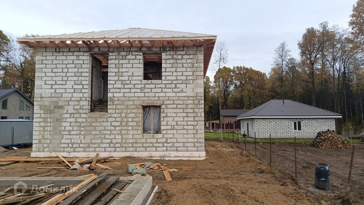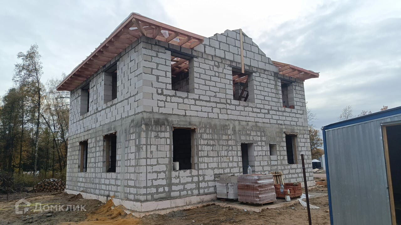 Продается двухэтажный коттедж c террасой, котельной и кухней-столовой 185 кв.м. на участке 5 соток в стадии строительства (под чистовую отделку к ноябрю). На соседнем участке в продажу строится второй дом.