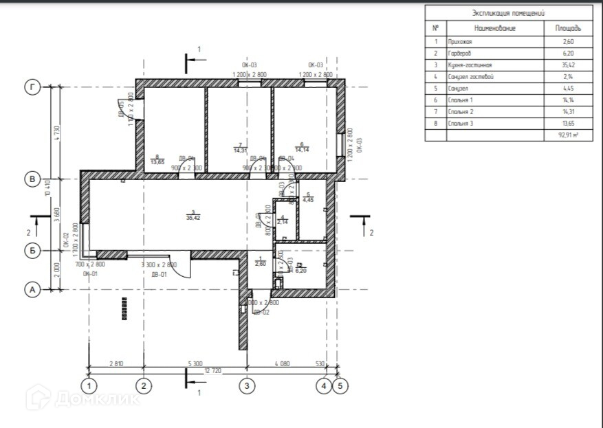 Общая площадь 92.9 м2