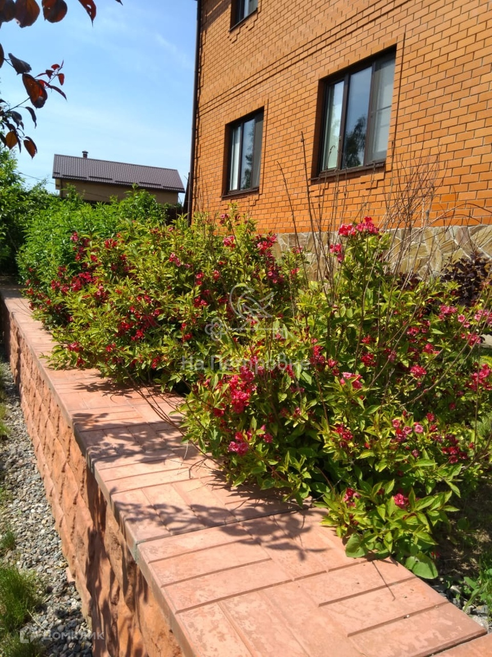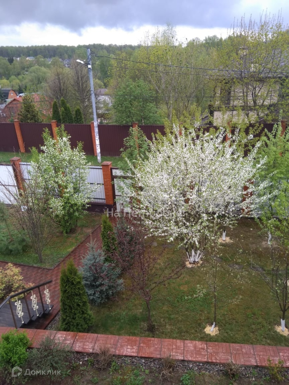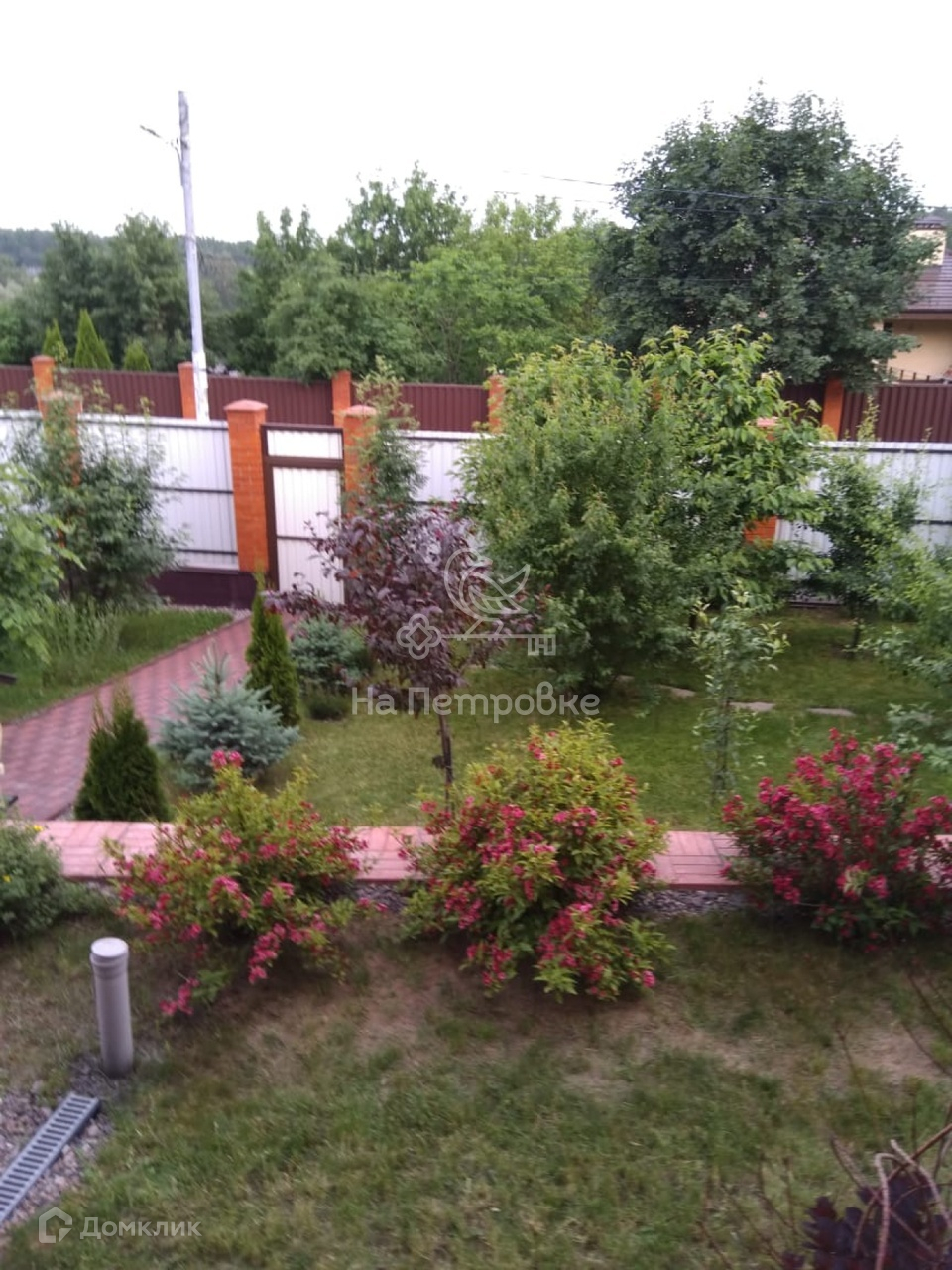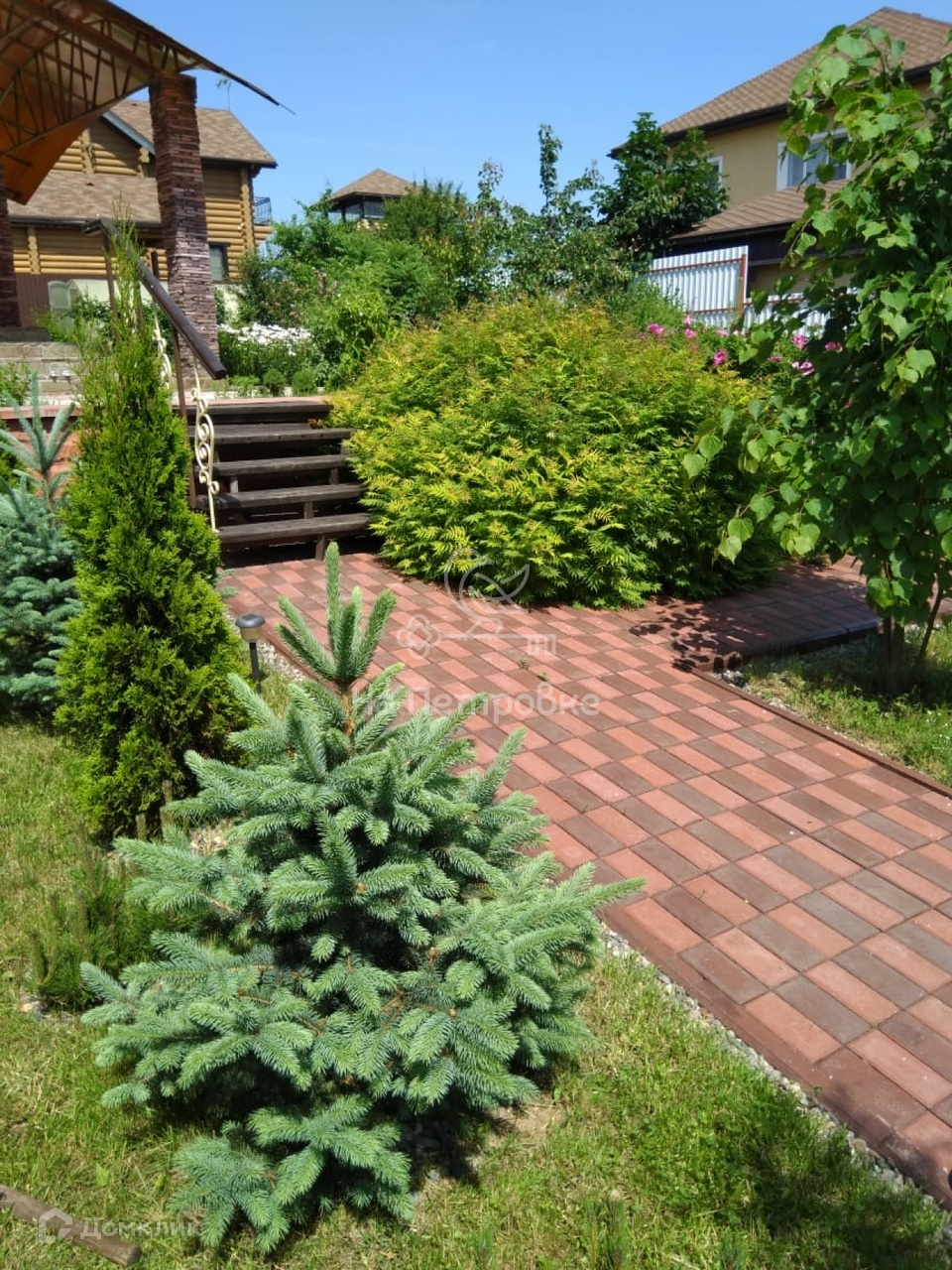 В саду посажены фруктовые и декоративные деревья,