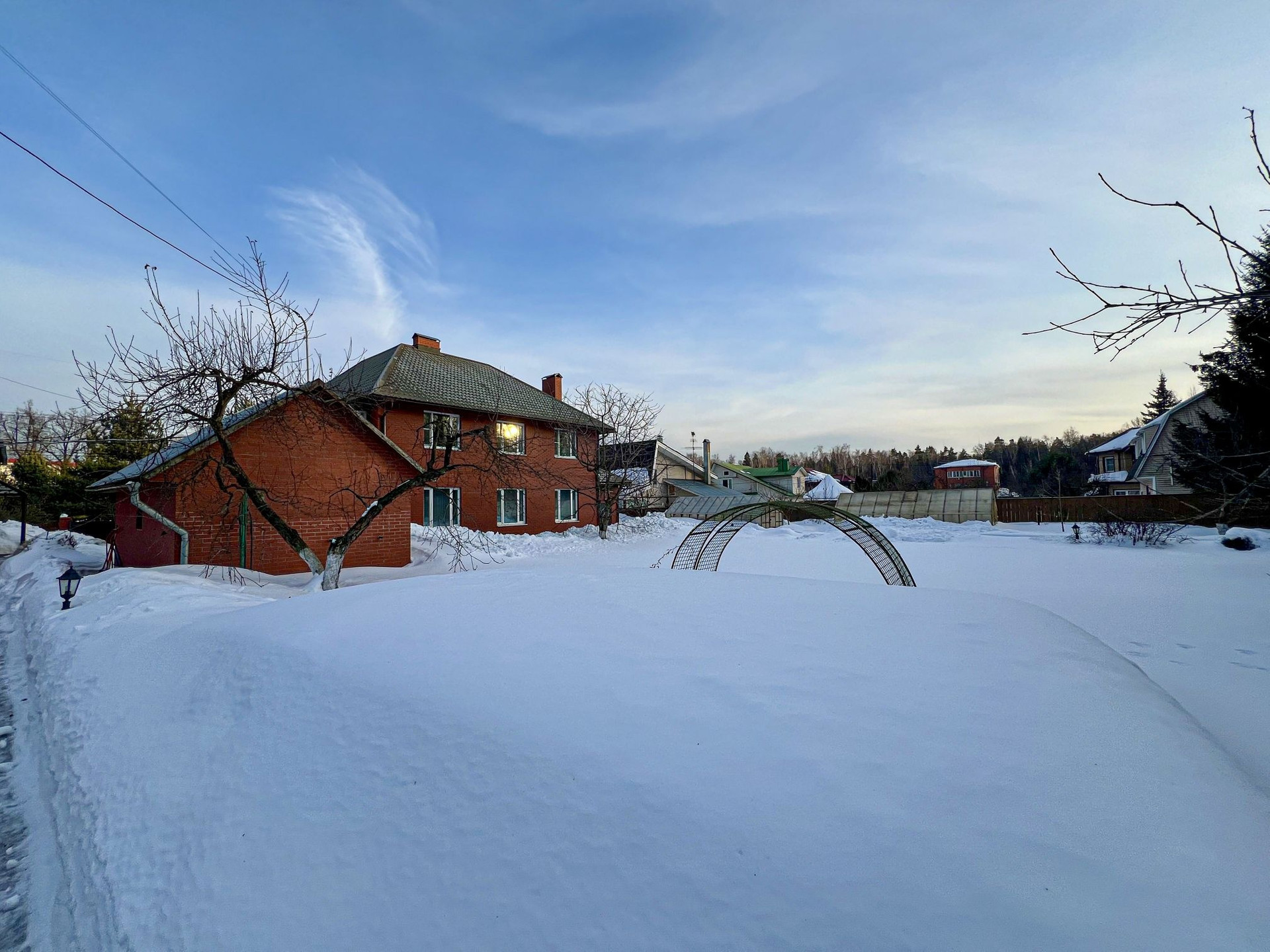 2 теплицы, малина, крыжовник, ежевика, жимолость, груша, яблоня,черешня, туи 12 штук, 2 кедра, ёлки. абрикос, грецкий орех (по ведру каждый год),