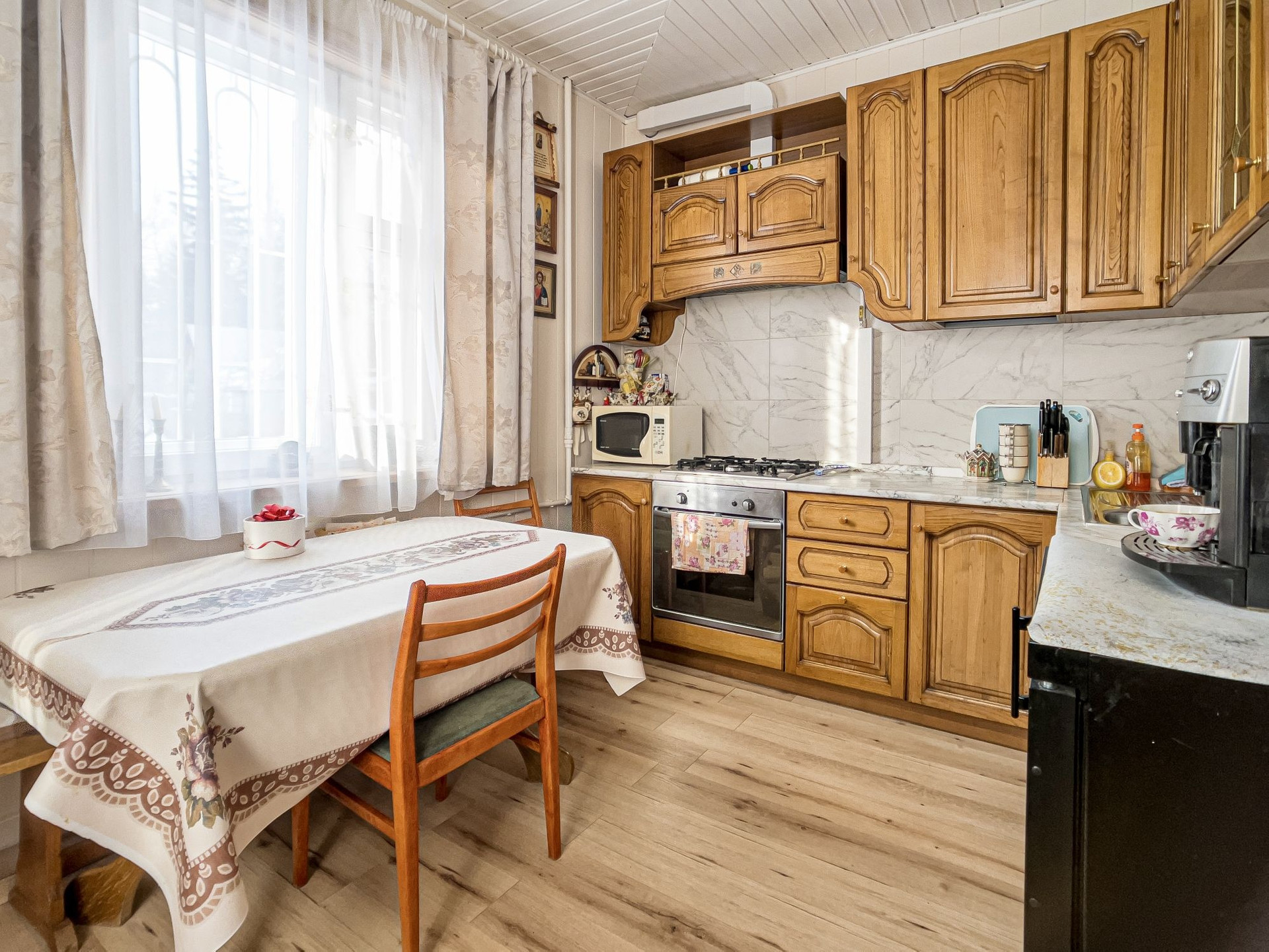В доме удобная планировка : 4 спальни, 2 большие гостиные (одна изолированная, так же может использоватся как спальня), кухня, 4 санузла с гигиеническим душем, балкон, 2 помещения для хранения вещей, котельная и подвал.