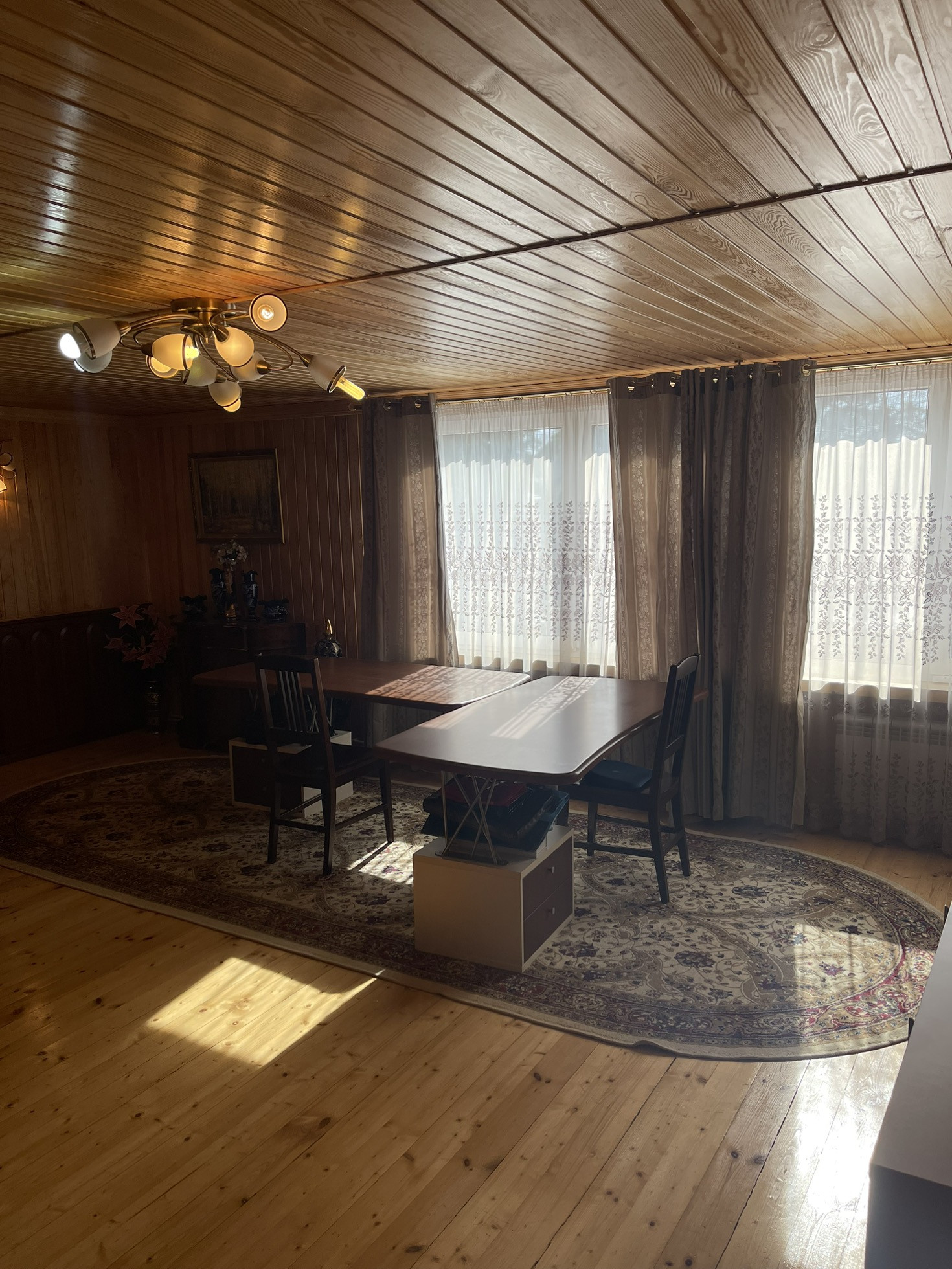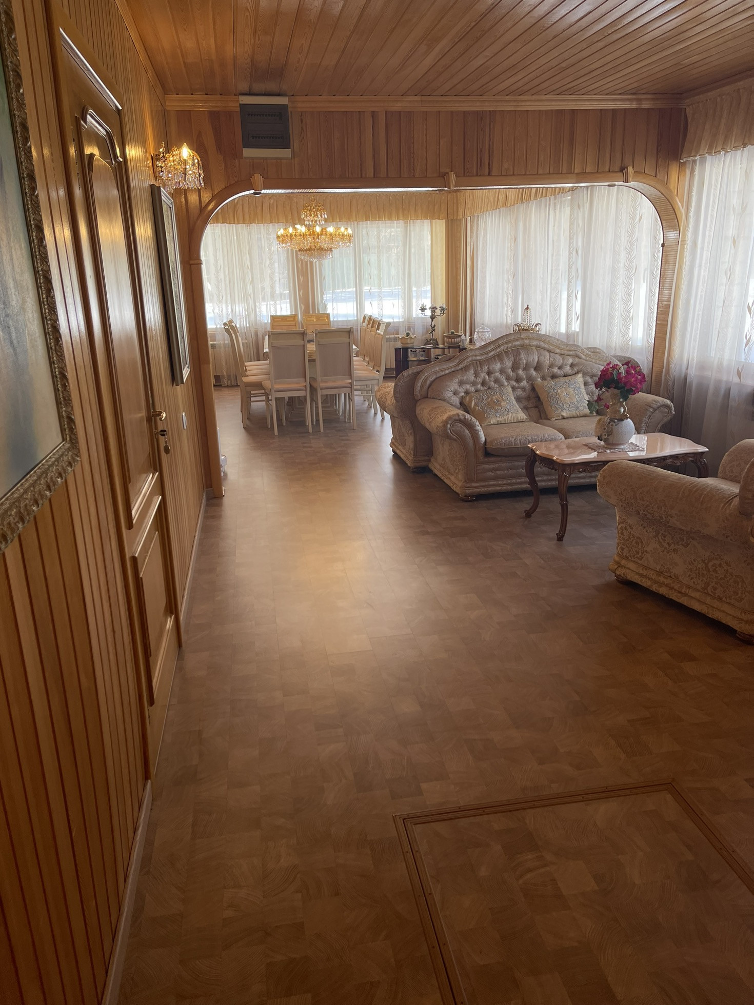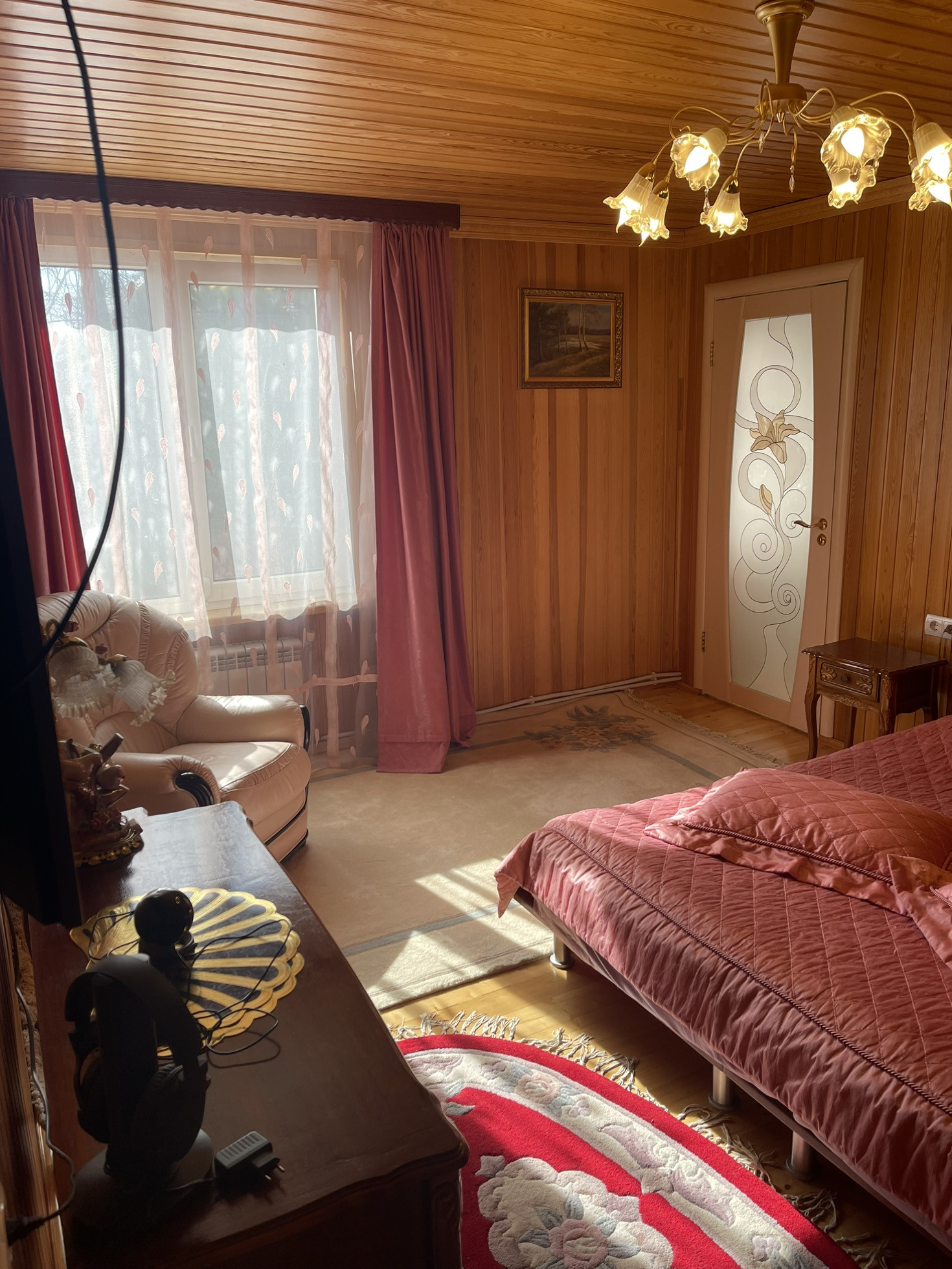 Удачная планировка: на первом этаже: тамбур, блокирующий попадание на прямую в дом холодного и горячего воздуха, удобная прихожая, котельная, с двумя взаимозамещающими друг друга, газовыми котлами, санузел., мастер спальня с гардеробной комнатой и сан. узлом, просторная гостиная 60 м, из двух частей, удобная кухня, комната отдыха. Также пристроена к дому просторная веранда, собранная из специального стекла, пластика и поликарбоната, Английского производства.
