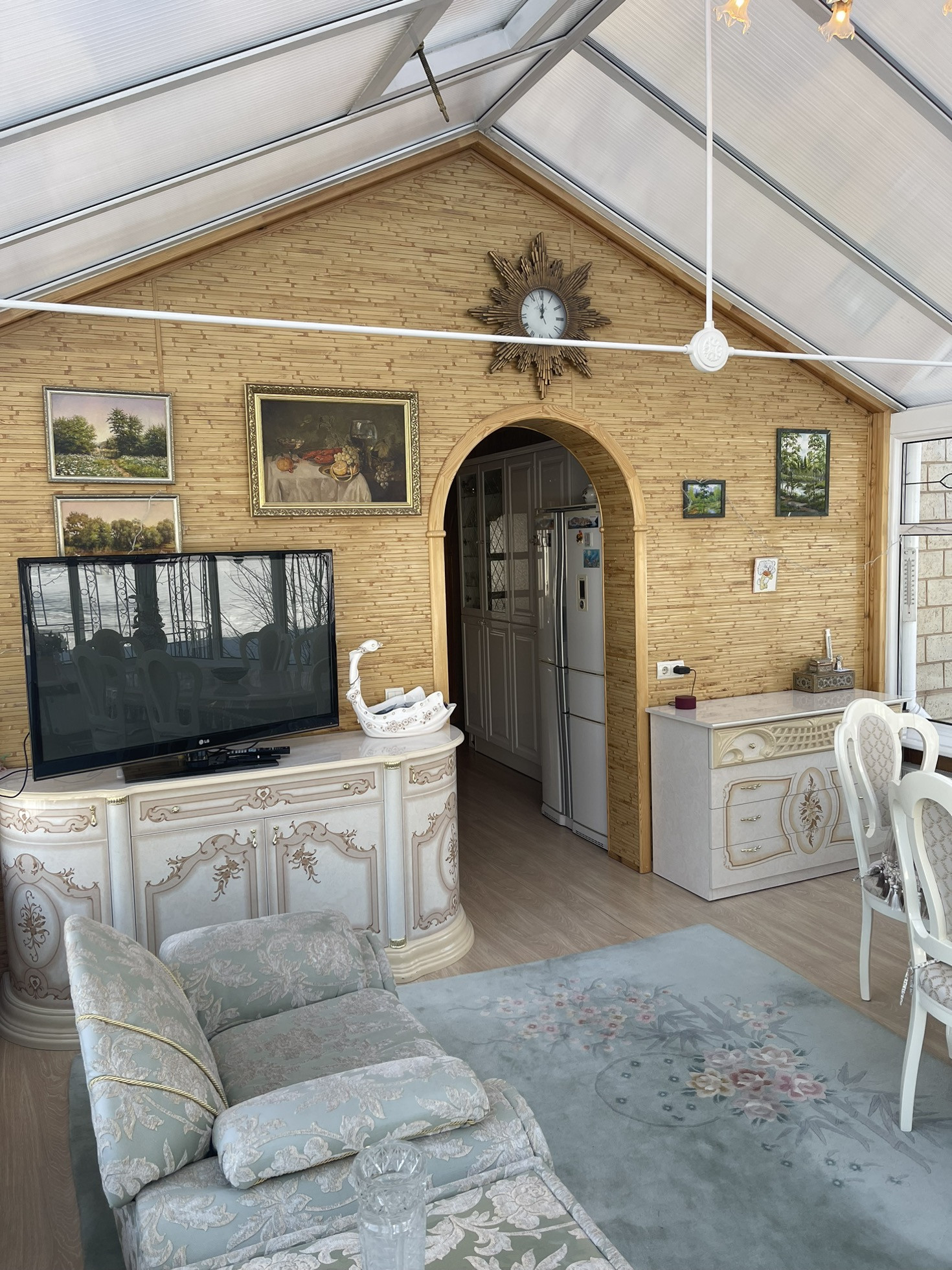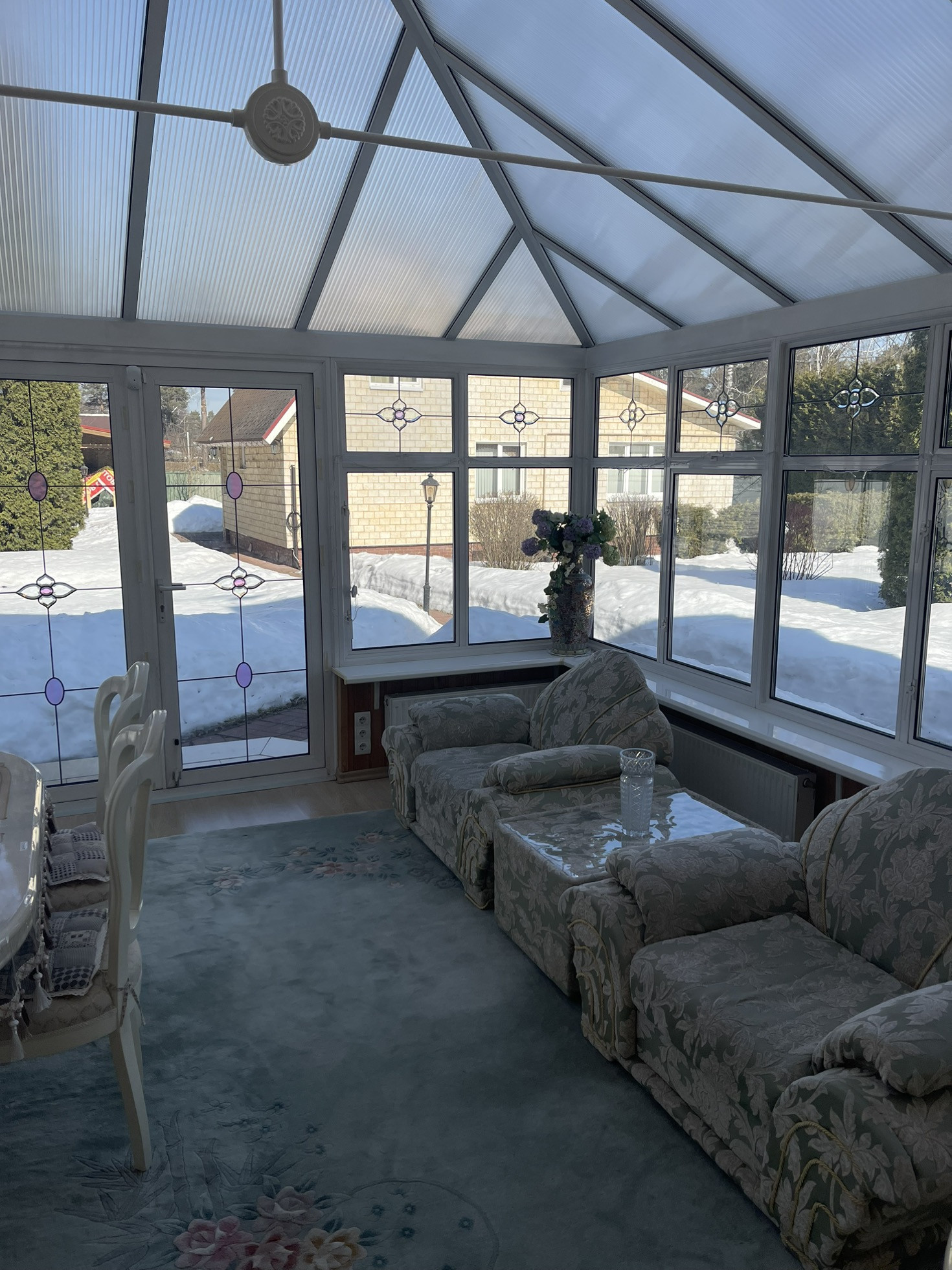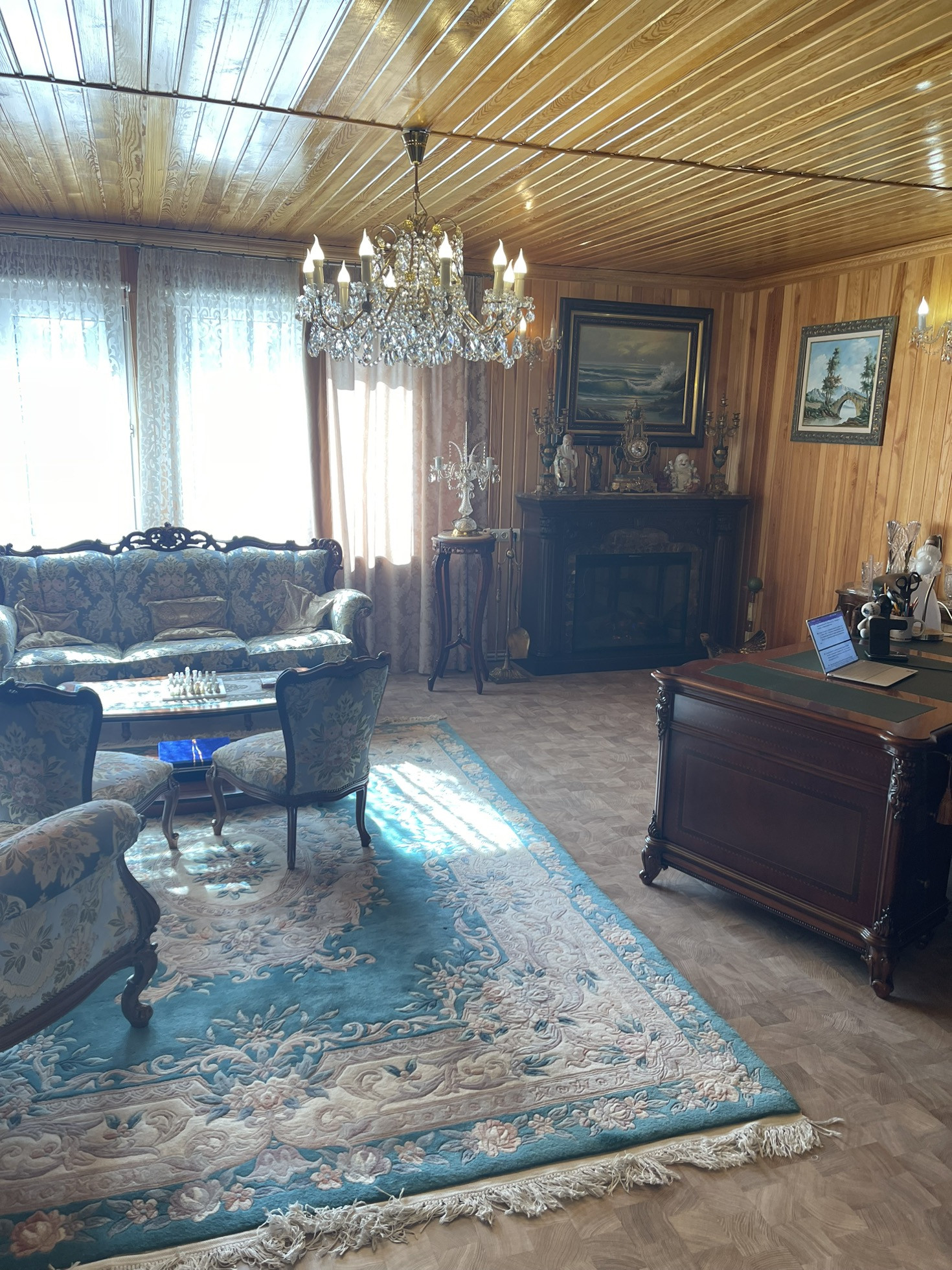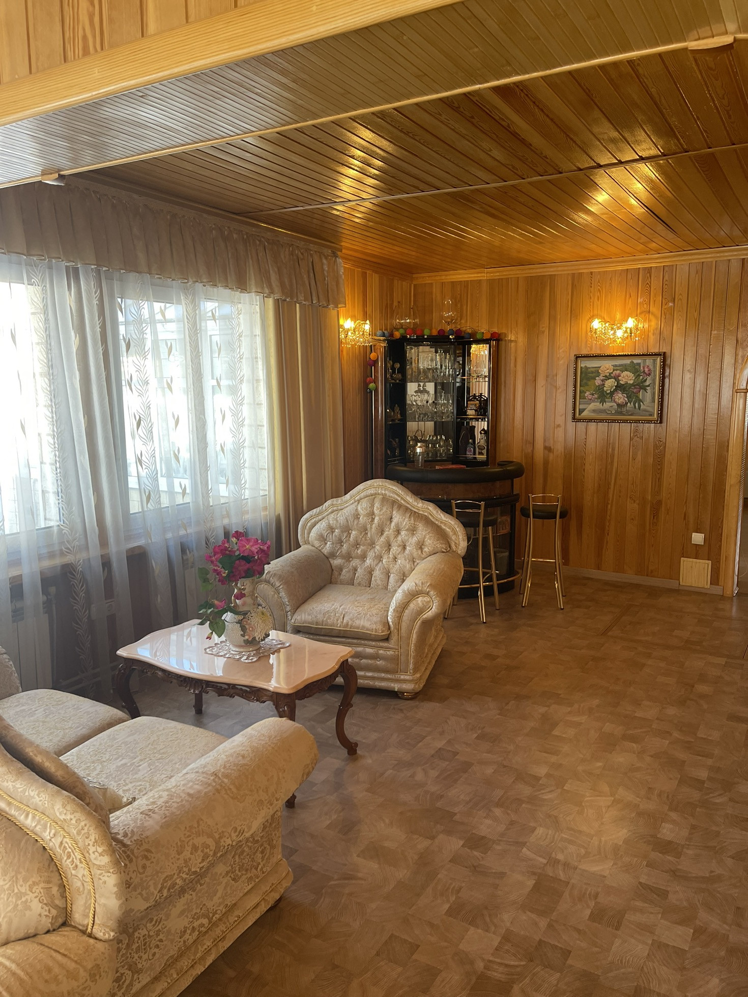 Удачная планировка: на первом этаже: тамбур, блокирующий попадание на прямую в дом холодного и горячего воздуха, удобная прихожая, котельная, с двумя взаимозамещающими друг друга, газовыми котлами, санузел., мастер спальня с гардеробной комнатой и сан. узлом, просторная гостиная 60 м, из двух частей, удобная кухня, комната отдыха. Также пристроена к дому просторная веранда, собранная из специального стекла, пластика и поликарбоната, Английского производства.