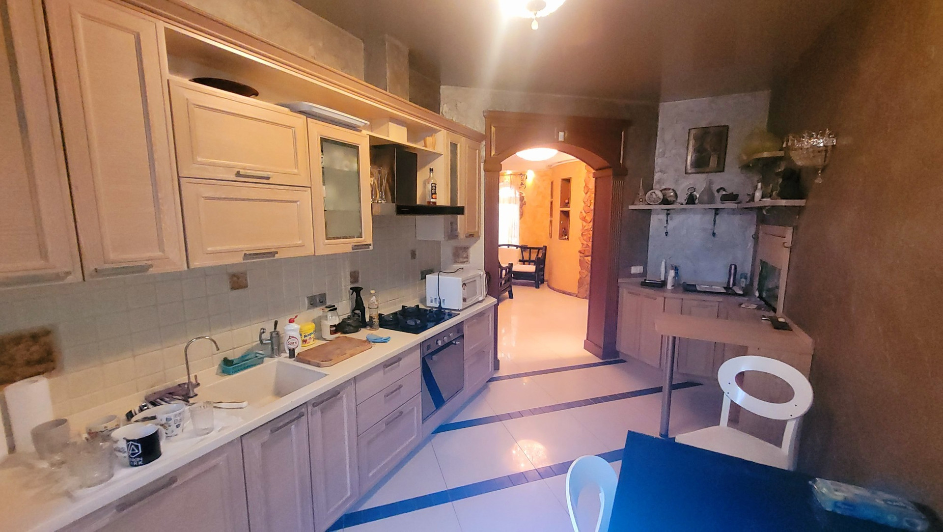 Въезд на участок через ворота. Сделан крытый навес для автомобилей. Так же на участке есть дом для помощников по хозяйству: 1 этаж подсобные помещения, комната с с/у и душевой кабиной, 2-й этаж: комната, кухня, с/у.