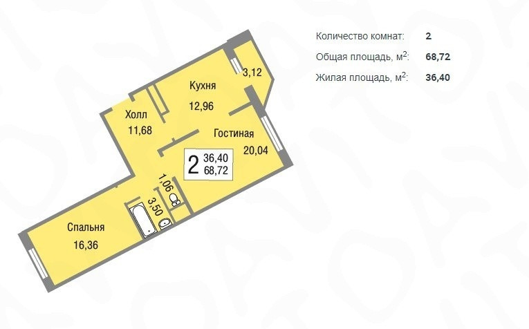 Общая площадь 64 м2