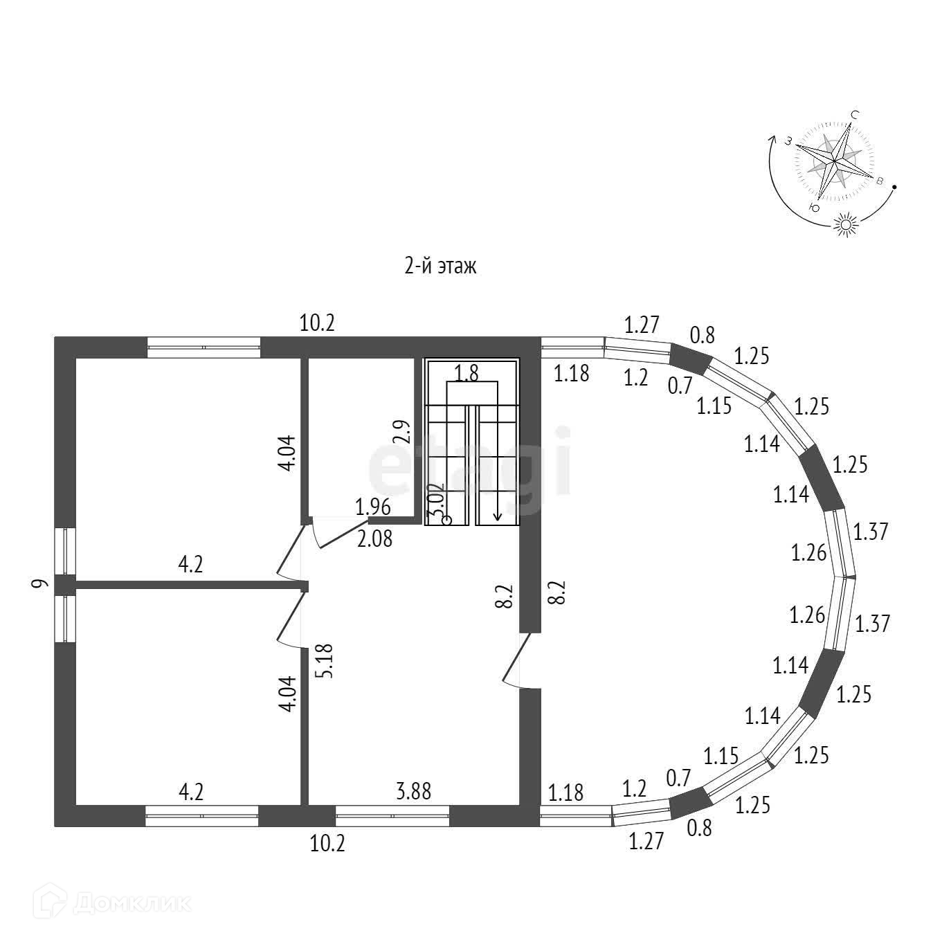 Высота первого этажа – 3,47 м., 2-ого – 2,62 м., 3-его – 4 м. до конька, с окна открывается вид на озеро.