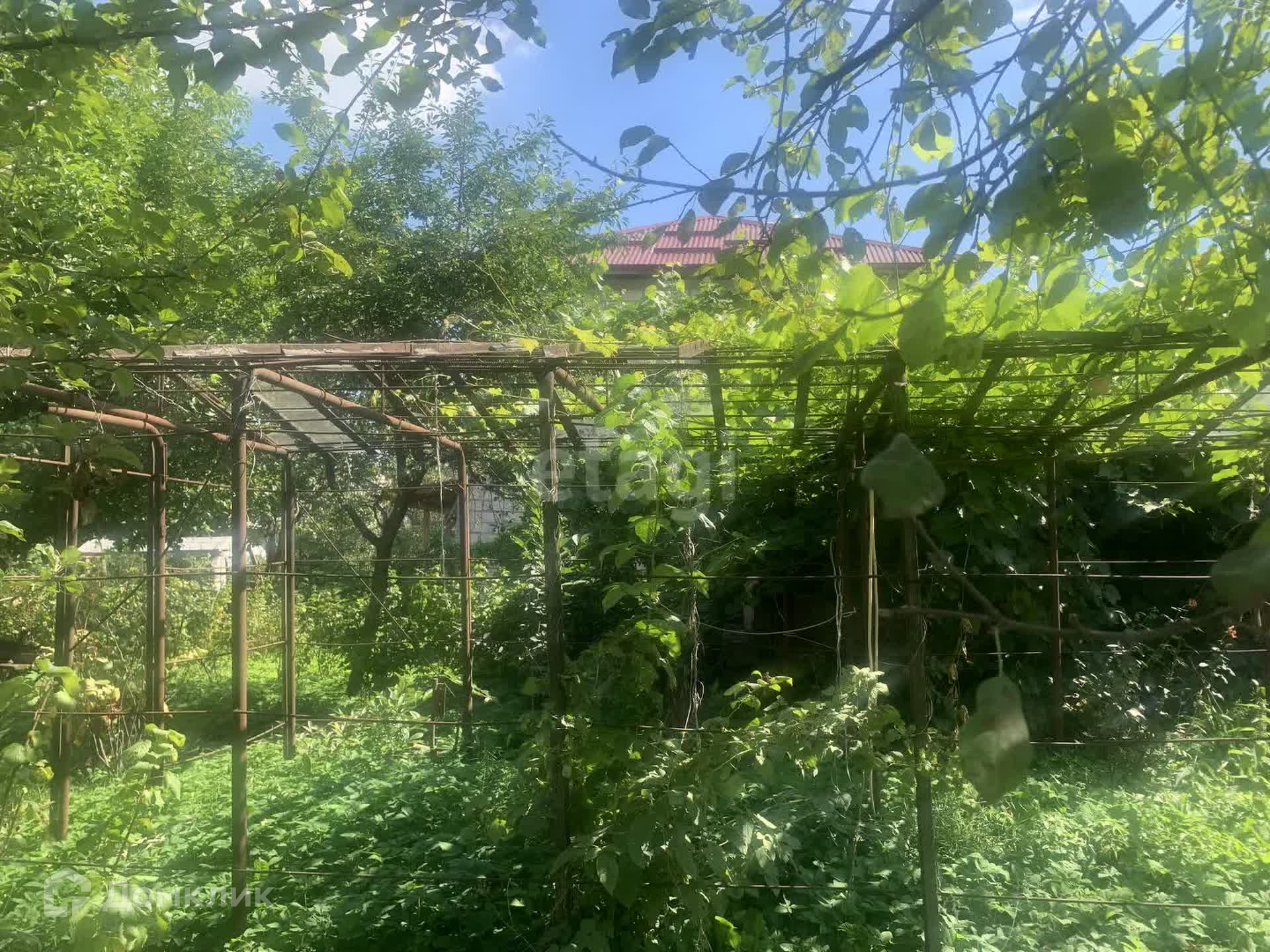 На участке растет малина, виноград. деревья фруктовые