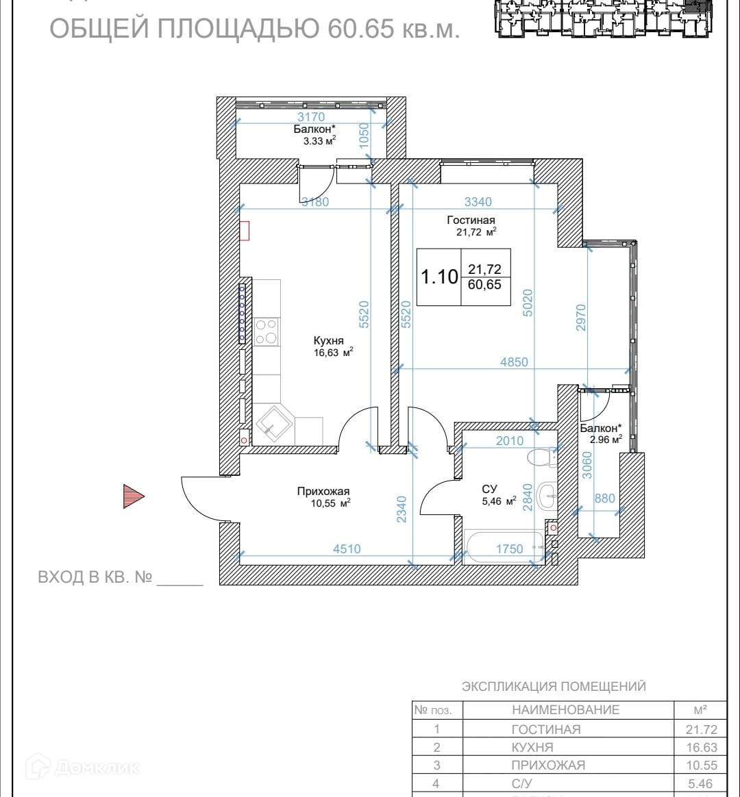 Общая площадь 60 м2