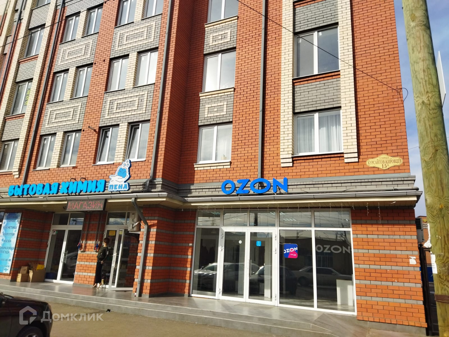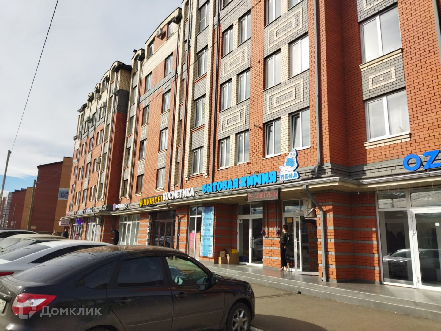 В доме есть аптека, магазин бытовой химии, пункты выдачи заказов "OZON" и "Lamoda", алкомаркет и др.