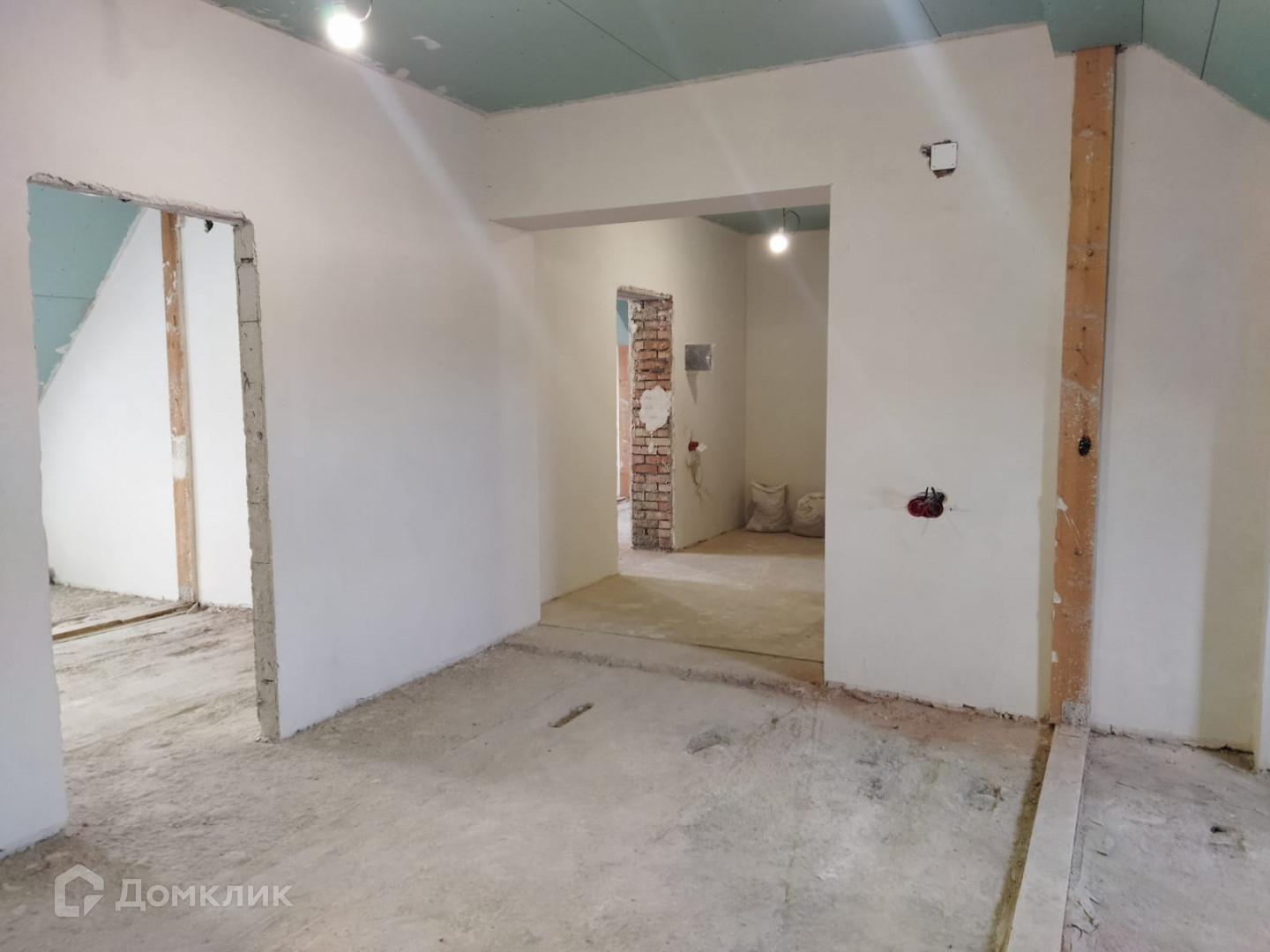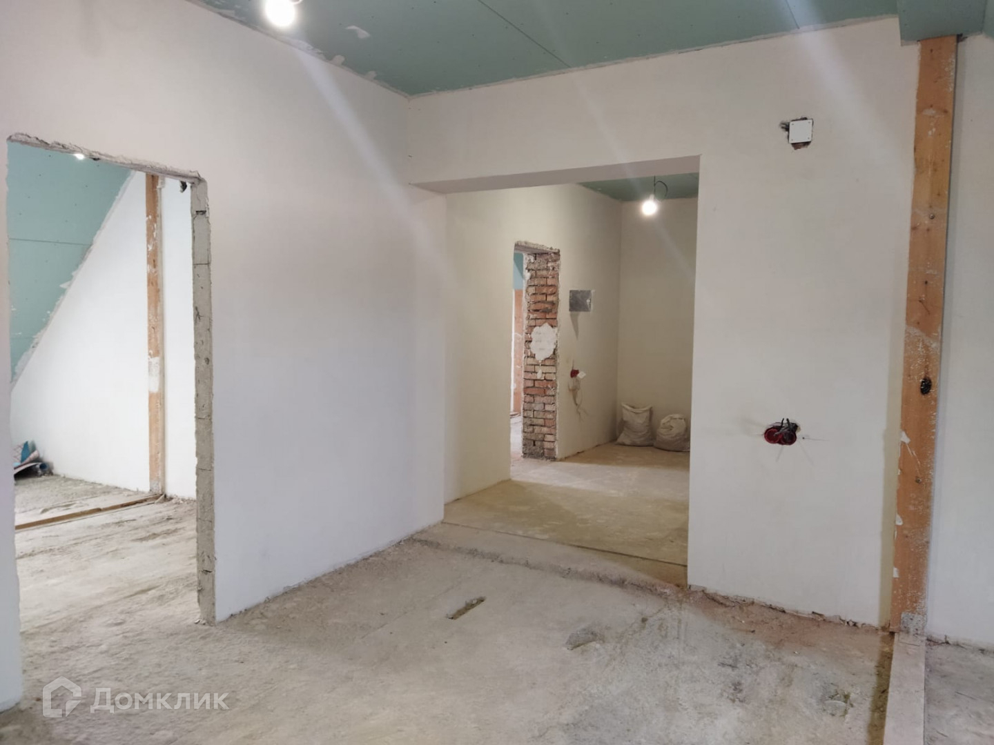 В квартире выполнены электротехнические работы и штукатурка под обои.