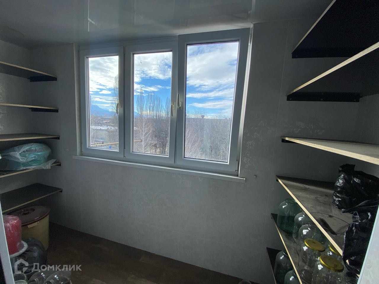 потолки тоже под маяк, лоджия сделана полностью кафелем,