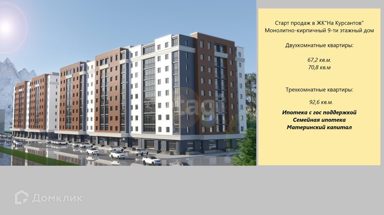 2-комнатная квартира, 67.2 м2, этаж 9 / 9, на продажу во Владикавказе, улица Курсантов-Кировцев, 4А