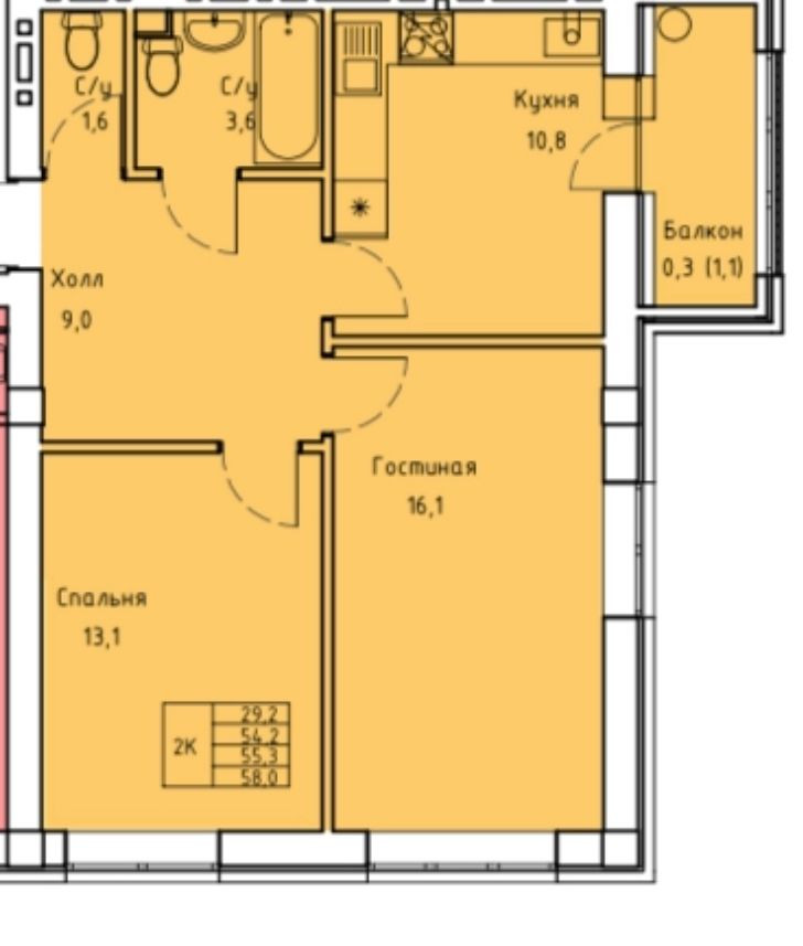 Общая площадь 58 м2